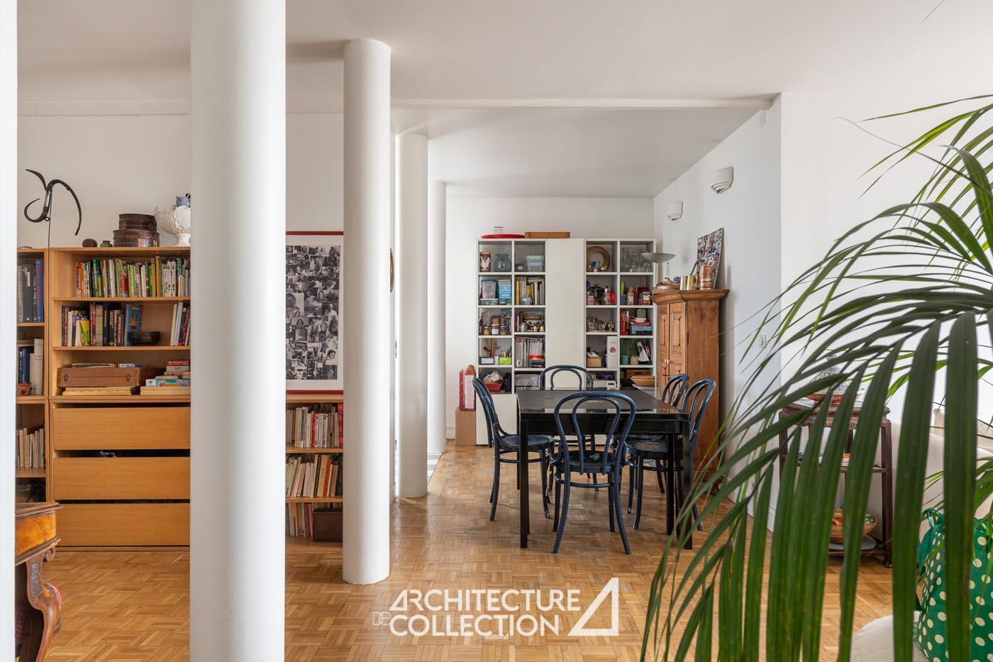 For this first residential “skyscraper,” the architect sought to integrate a high-rise building into the Parisian landscape and to place structural ingenuity at the service of a flexible layout. High-rise buildings, which emerged in the United States at the end of the 19th century with metal structures, appeared only later in France, where urban planning regulations long restricted their construction.