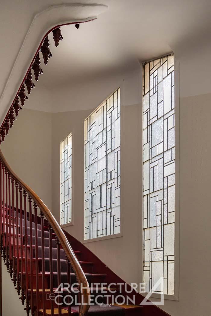 In the common areas, the stained-glass windows evoke the creations of master glassmaker Louis Barillet for the Hôtel Martel, designed by Mallet-Stevens in 1927.