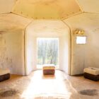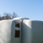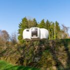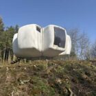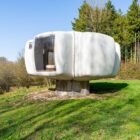 Accessed via a flight of metal steps, this organic architecture without foundations offers a living area of 36 m².