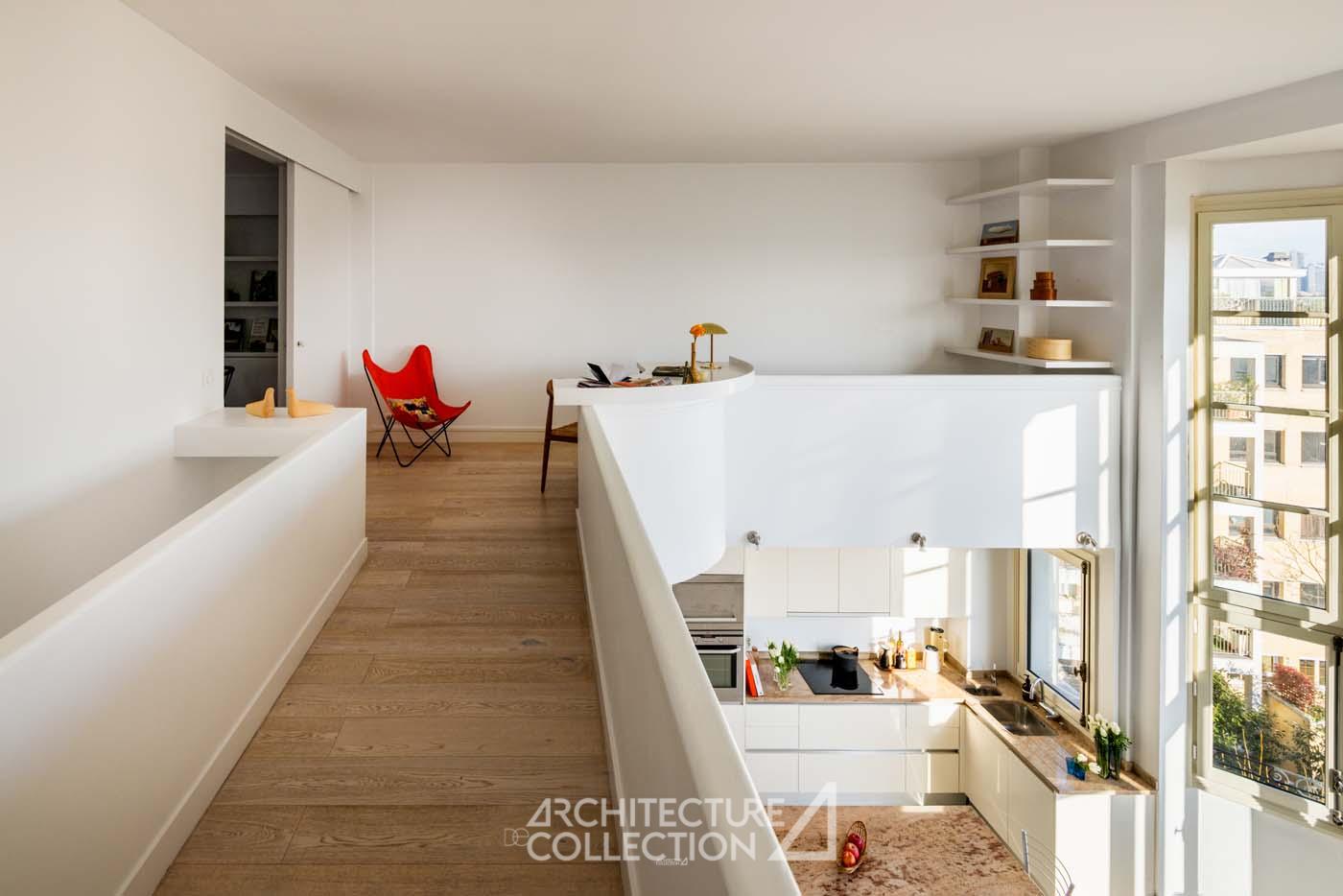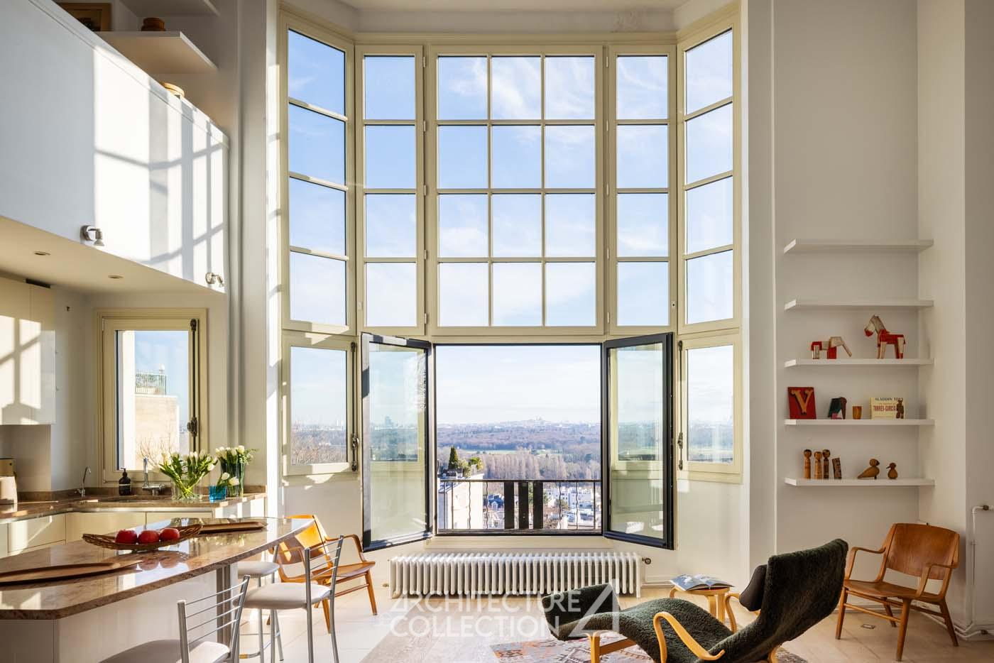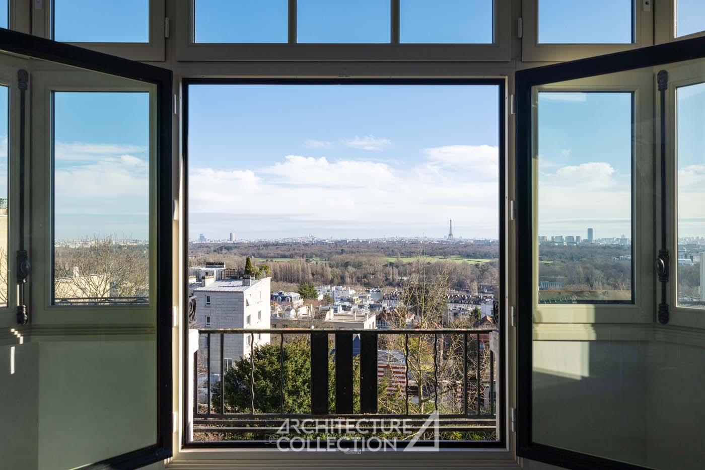 In a typically Art Deco complex designed in 1932 by Maurice Bonnemaison, this duplex offers spectacular panoramic views of Paris, from the Eiffel Tower to Sacré-Cœur and the towers of La Défense.