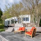 The industrial dimension harmoniously dialogues with the organic environment, highlighting by contrast an omnipresence of nature within the home.
