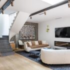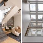 A staircase, bathed in light from a skylight, leads to the upper floor with the night spaces. Two additional bedrooms with en-suite shower rooms, a dressing room, and separate toilets complete this level.