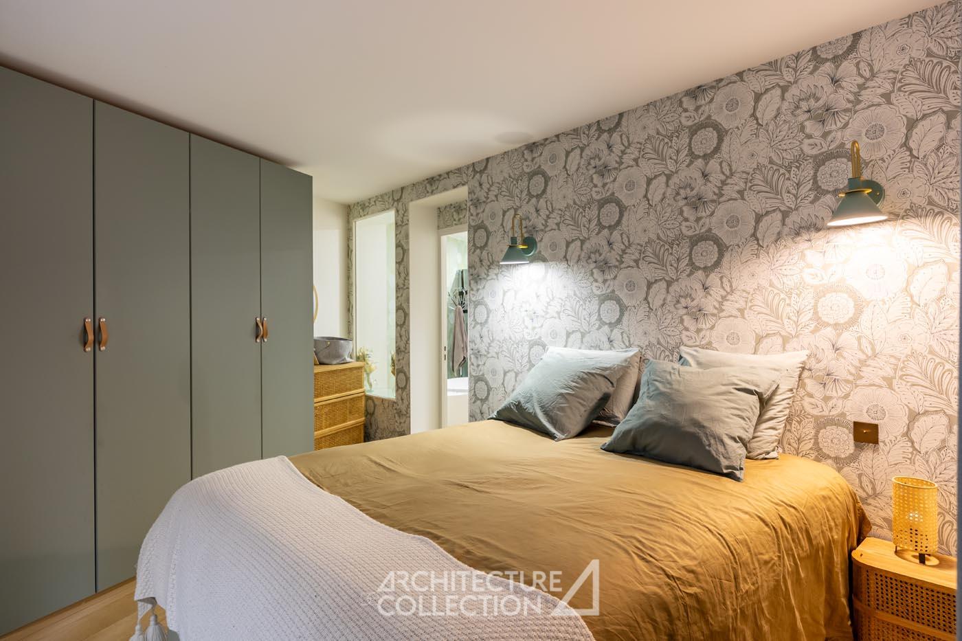 This level includes a master suite and a second bedroom with an en-suite shower room. The second bedroom benefits from an independent entrance and a private outdoor area, allowing for the possibility of creating a self-contained studio.