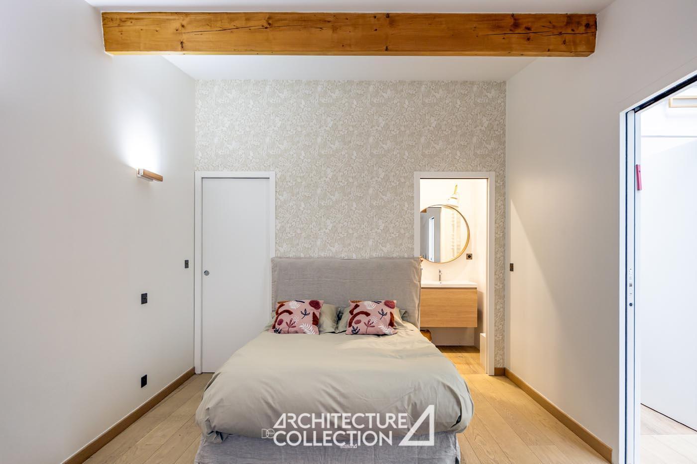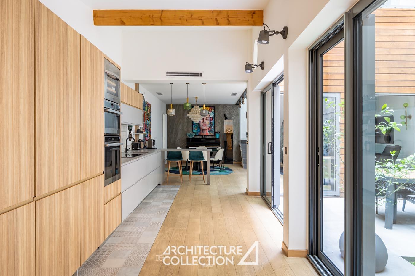 Nestled quietly at the back of a courtyard, this contemporary house spans 155 m² of living space and features a 30 m² outdoor patio, right in the center of the capital.