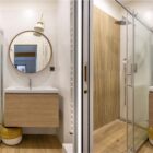 The architecture stands out for its simplicity and attention to the lifestyle of its occupants. The architect favored the use of natural and durable materials requiring minimal maintenance, such as oak parquet, polished concrete, and red cedar used for the patio facades. The overall design reflects an approach where materiality, light, and spatial organization harmoniously contribute to the quality of the living environment.
