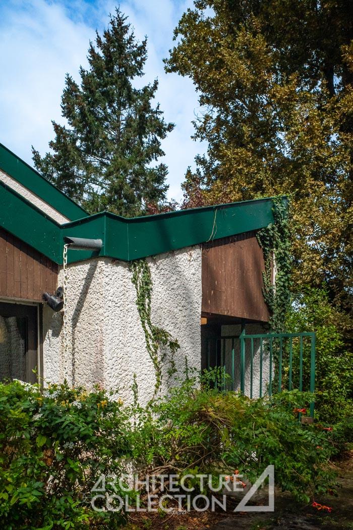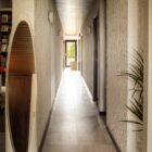 The interior spaces are distinguished by varying ceiling heights, unobstructed views of the tree-filled garden, and abundant natural light that evolves throughout the day. The large original sliding glass doors create a seamless connection between indoors and outdoors, staying true to the modernist spirit of blending with the landscape.