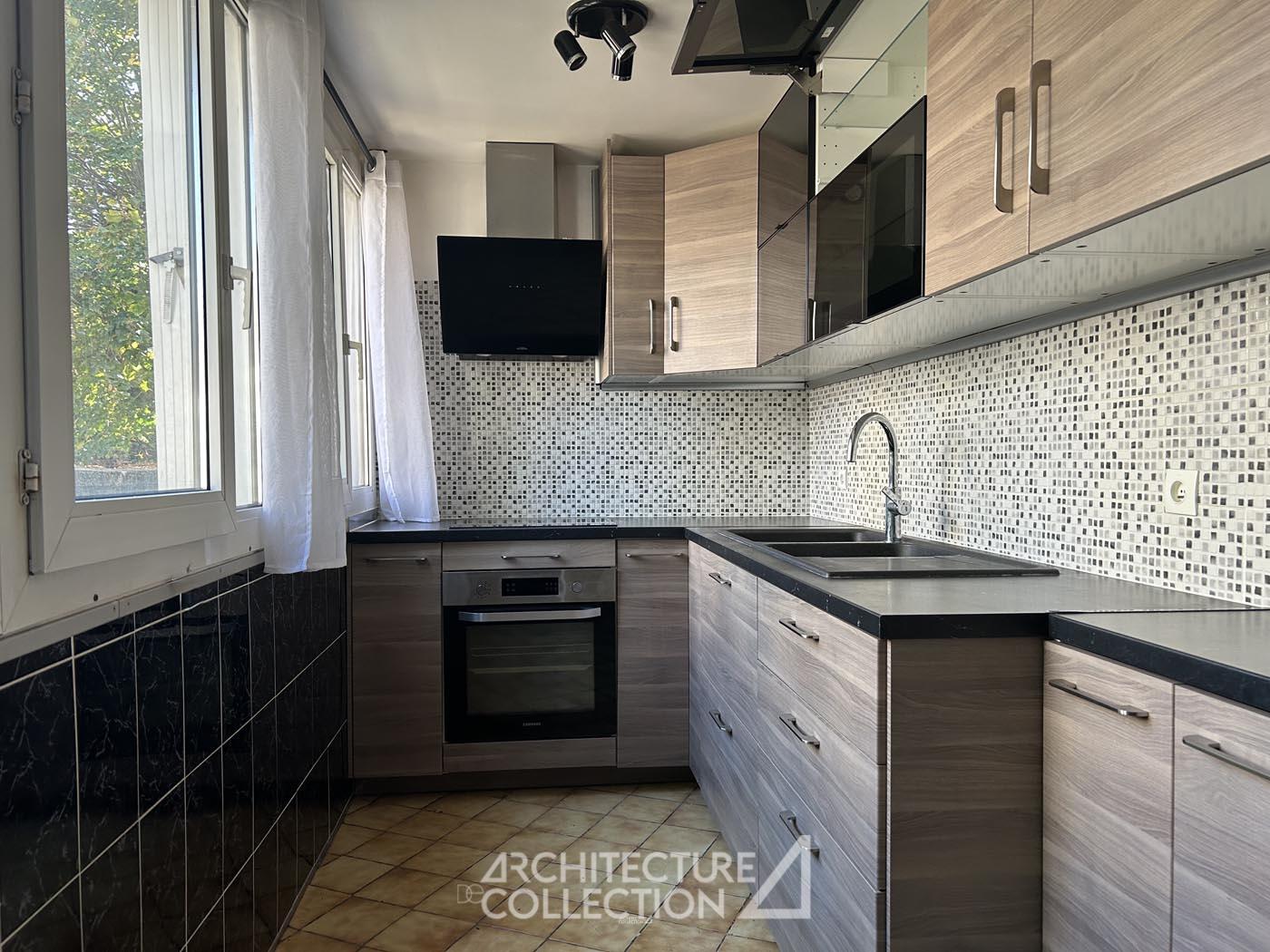 This property is situated in the private residential section of the Maladrerie neighborhood in Aubervilliers, just a 7-minute walk from the Fort d’Aubervilliers metro station (Line 7). It benefits from nearby shops, numerous schools, and green spaces.