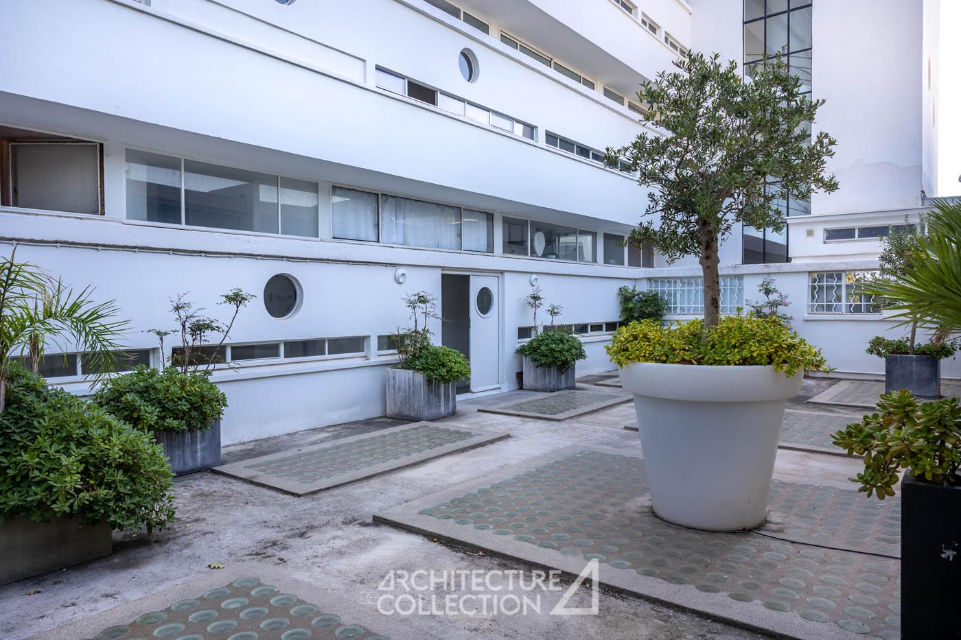Cet appartement entièrement rénové en 2020 se situe au sein du Latitude 43, réalisation emblématique du style paquebot signée par Georges-Henri Pingusson en 1932, inscrite au titre des Monuments Historiques en 1992 et labellisée Patrimoine du XXe siècle.