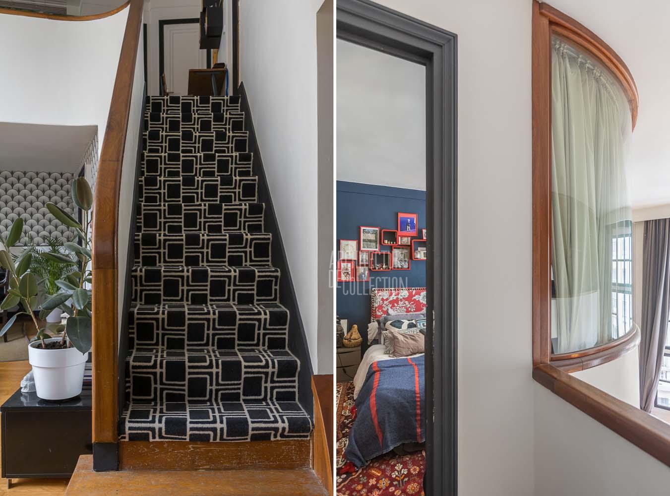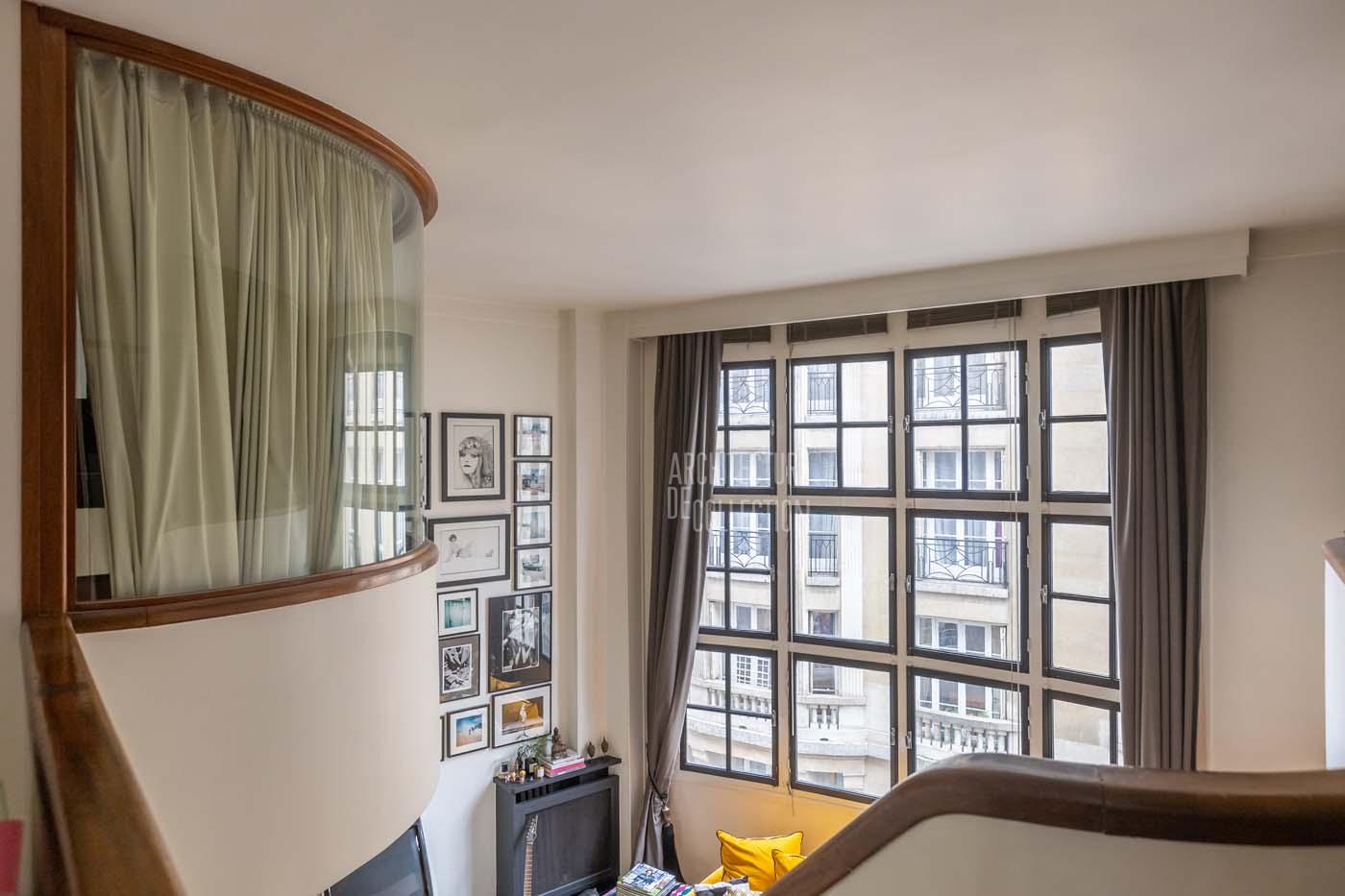 Ce superbe appartement en duplex est situé dans un édifice iconique des années 1930, réalisé par les architectes Jean Charavel et Marcel Melendès et qui abritait à l’origine le cinéma Pathé-Natan.