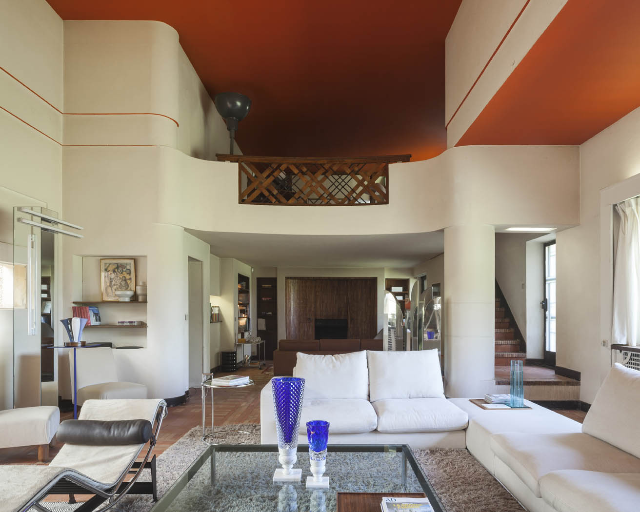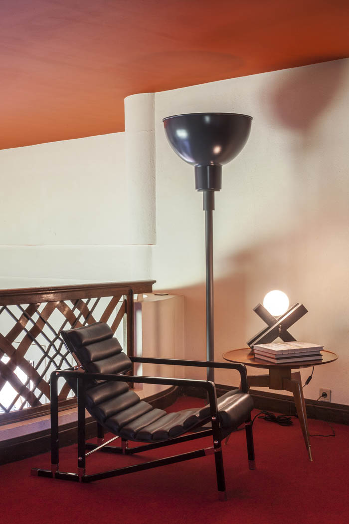 Les décors réalisés par Jacques-Emile Ruhlmann se caractérisent par des formes géométriques et dépouillées accentuées et par un agencement fonctionnel très poussé pour l’époque. Il y incorpore toutes sortes d’accessoires : téléphone, luminaire, barre chauffe-pieds, tableau de commande pour l’éclairage, l’ouverture des portes et des volets, entre autres.