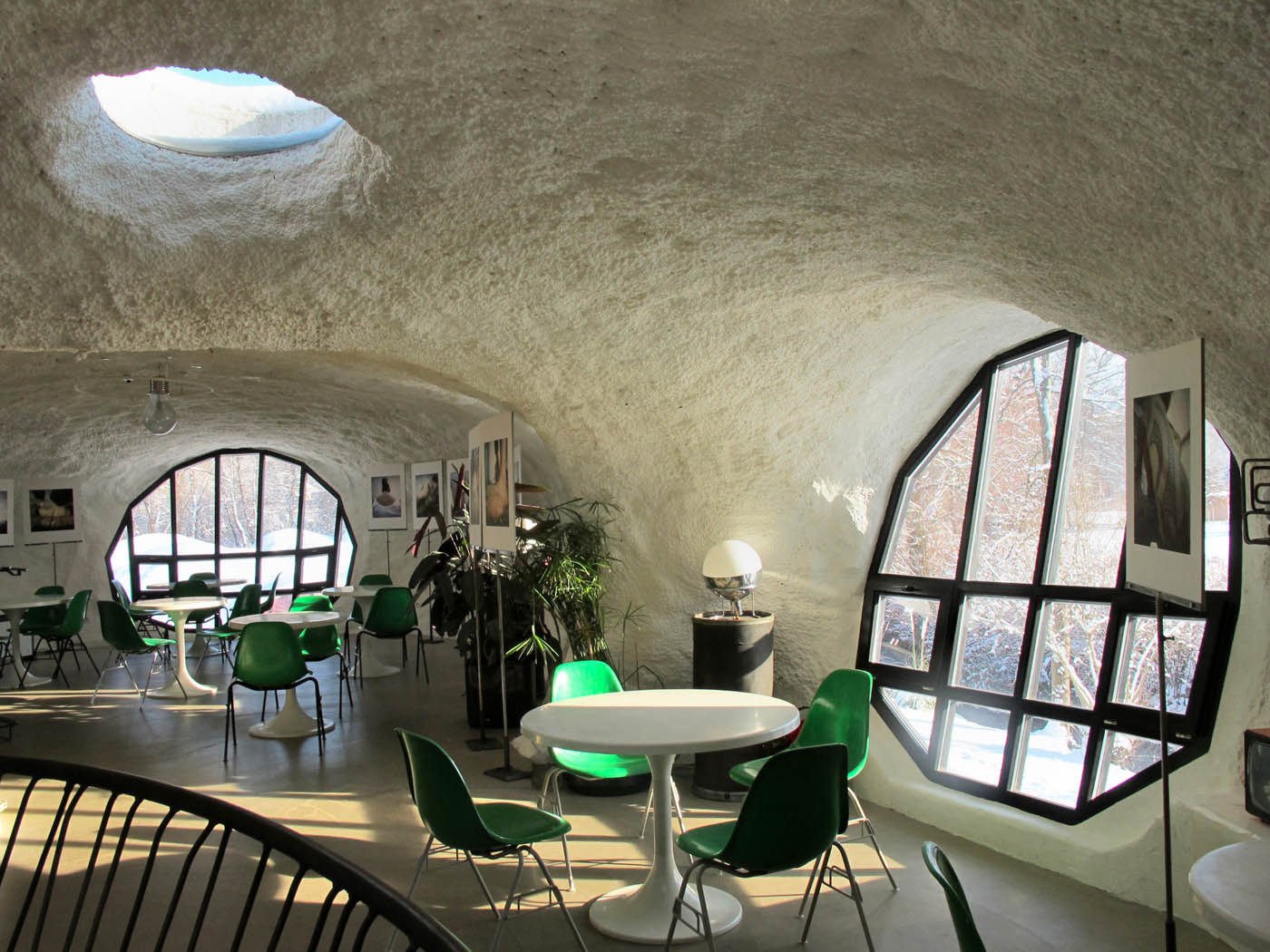 A l’intérieur, ces maisons-bulles déploient leurs formes organiques et sculpturales par des espaces aux formes variées. Ici pas d’angles droits mais des parois courbes et de nombreux coins et recoins. L’éclairage qui joue sur l’orientation, la taille et la forme des baies, accentuent la singularité de chaque pièce. La qualité des espaces s’allie à une décoration originale, dominée par le blanc et la couleur. Soignant les moindres détails (porte d’entrée, cheminée, etc.), Pascal Haüsermann a conçu une œuvre d’art totale, entre nature et architecture.