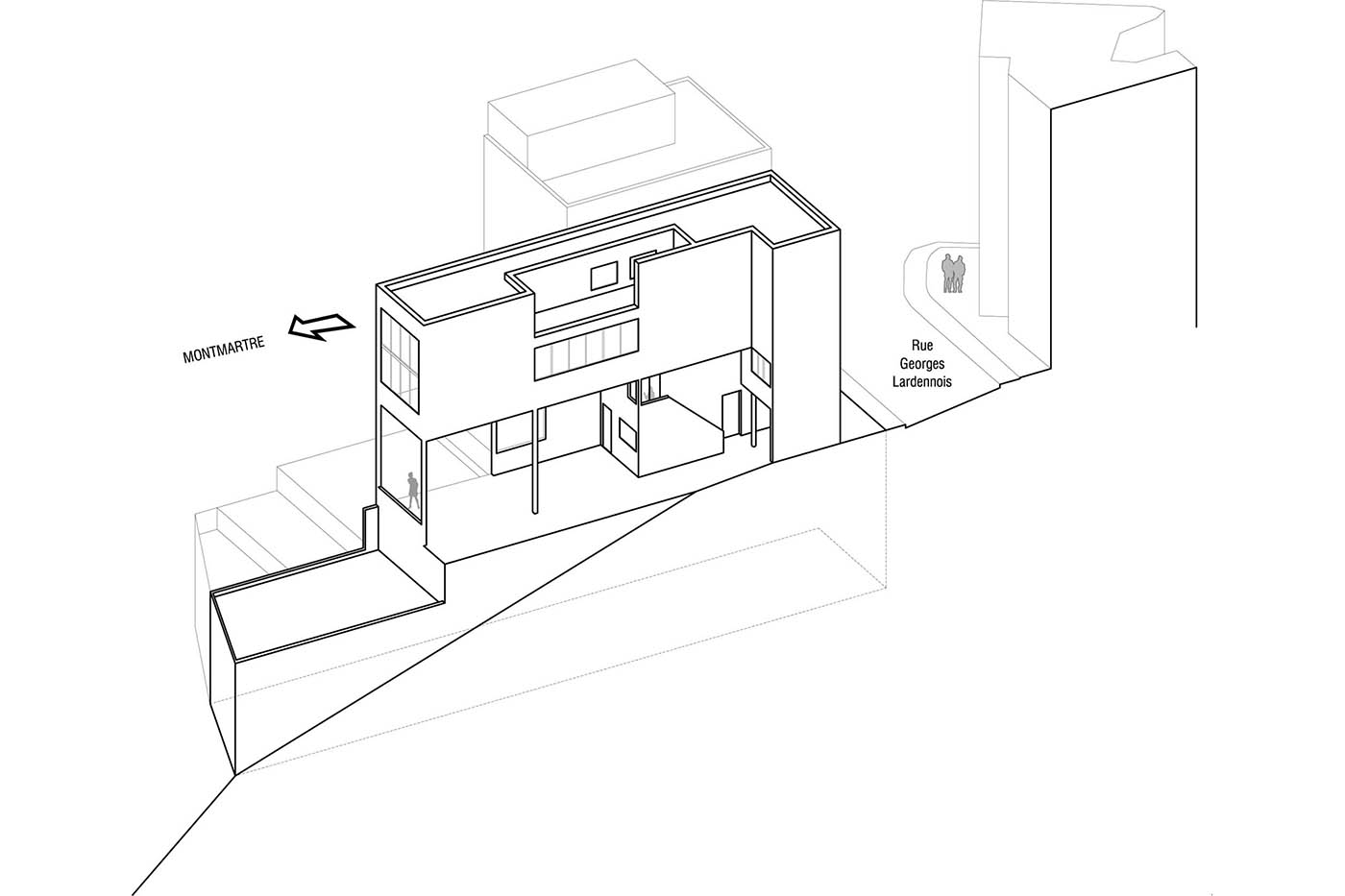 Construit à l’extrême économie, le bâti applique les Cinq points d’une architecture nouvelle et emploie un module de type corbuséen pour la composition des espaces ; il est dépouillé de tout type d’ornement et met en œuvre le concept de raumplan d’après les théories d’Adolf Loos. Le balcon latéral, laissé en béton brut, porte l’empreinte de son coffrage en bois, quinze ans avant la construction de l’Unité d’habitation de Marseille par Le Corbusier.
