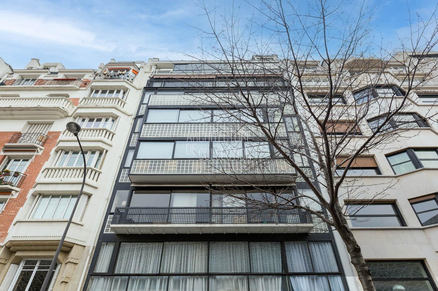 A deux pas du Parc des Princes et de Roland-Garros, l’immeuble est situé à cheval entre le 16ème arrondissement de Paris et Boulogne-Billancourt, dans le prestigieux parcours architectural des années 1930. Il profite de toutes les commodités de proximité et est desservi par le métro parisien (stations Porte d’Auteuil et Exelmans).