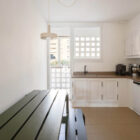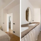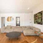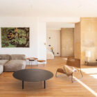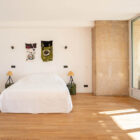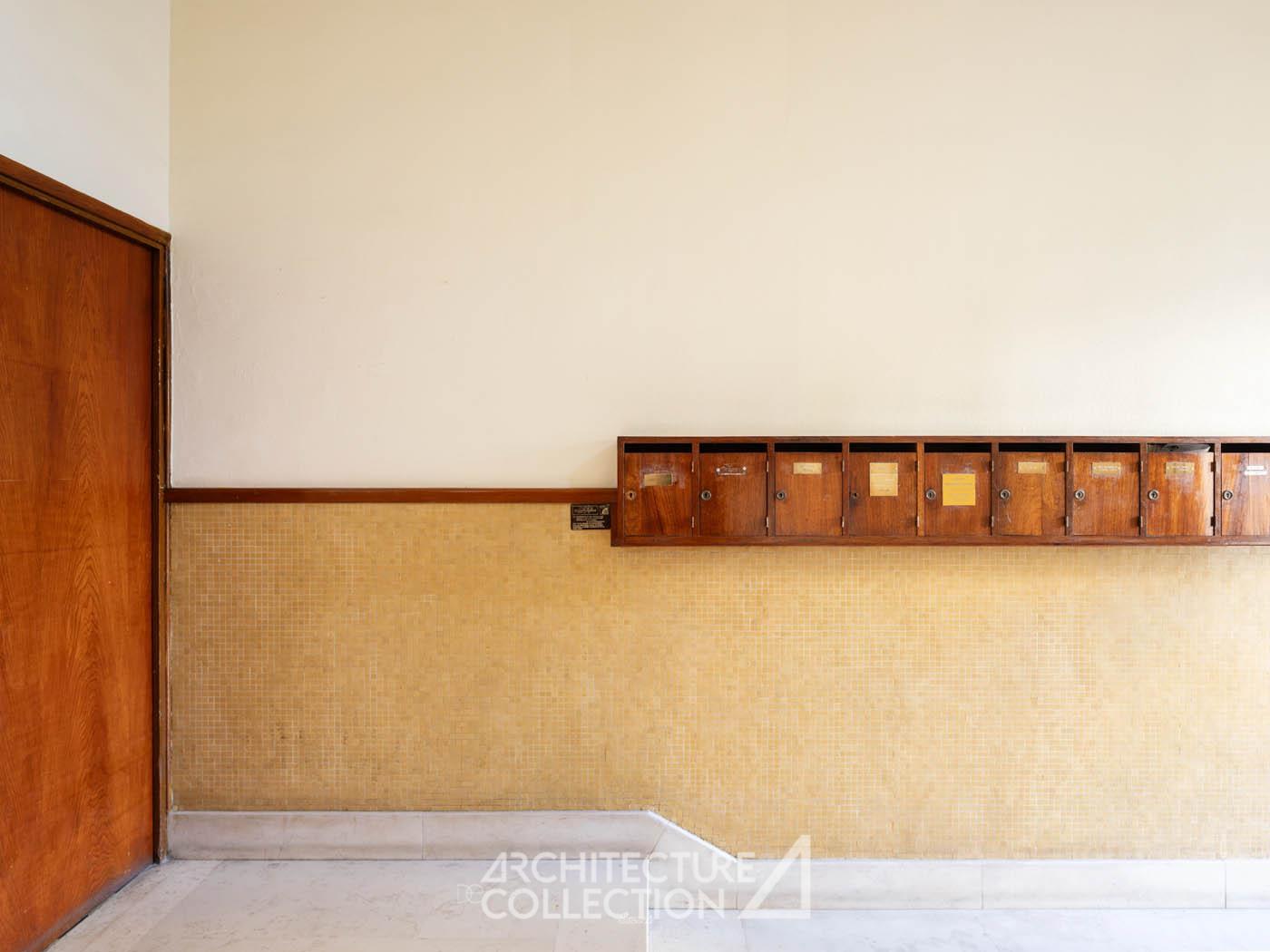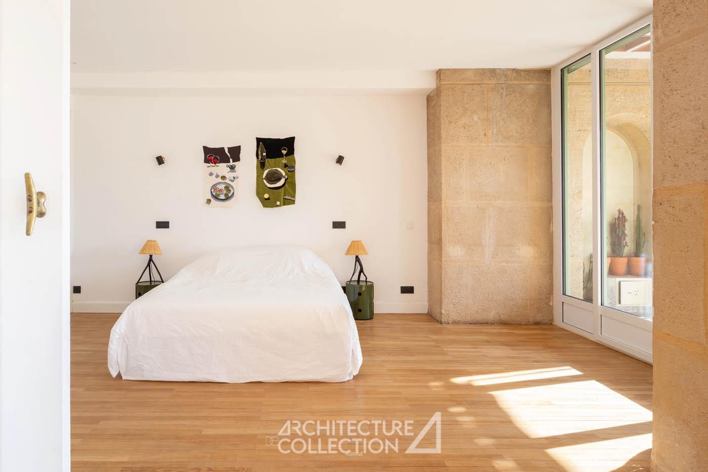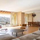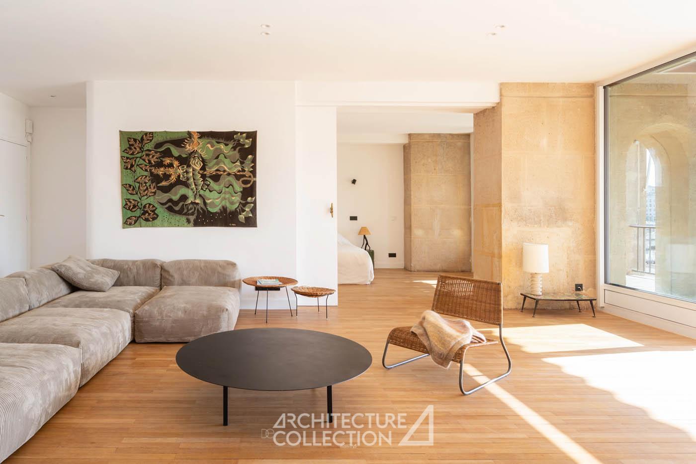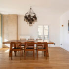Il a fait l’objet d’une rénovation complète par les architectes d’intérieur Claudia-Liza Richerd Duloisy et Paul Moreau (Studio & Studio). Ils adoptent une approche minimaliste et sobre, qui sublime l’architecture d’origine. Le volume intérieur est scandé par les piliers porteurs en pierre massive du Gard laissé apparente, qui guide l’aménagement des espaces et apporte une atmosphère douce et chaleureuse. Les ouvertures à linteau cintré et les plafonds en caissons de terre cuite donnent à l’appartement tout son cachet résolument méditerranéen. Le parquet d’origine a été conservé dans le salon.