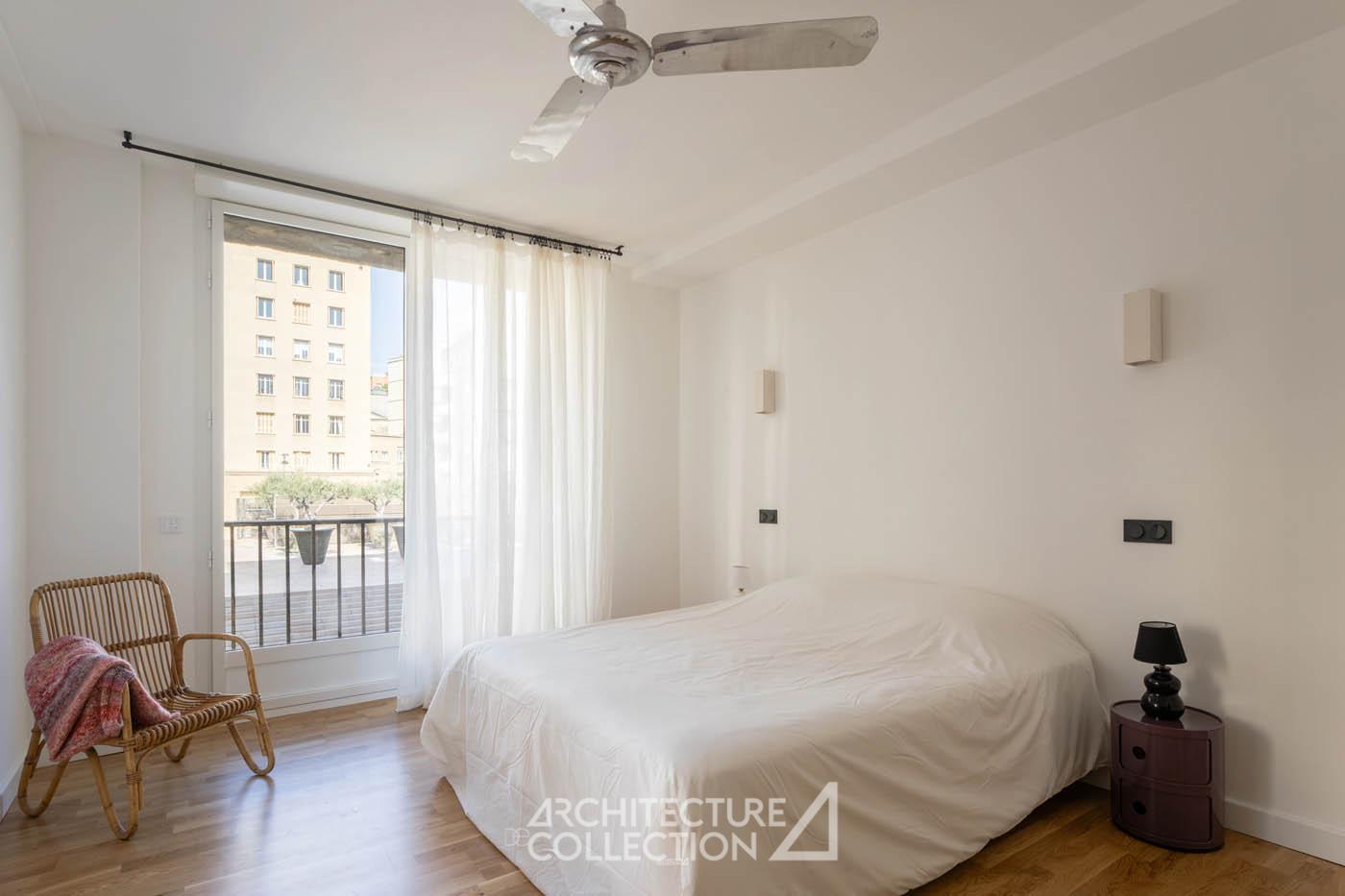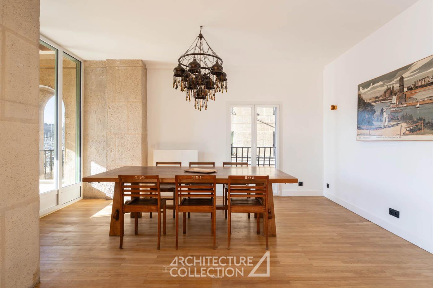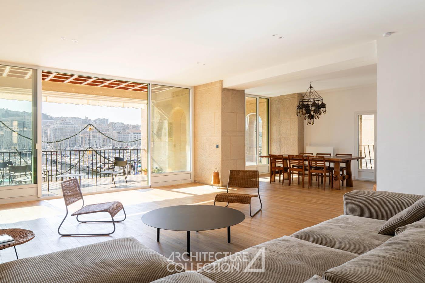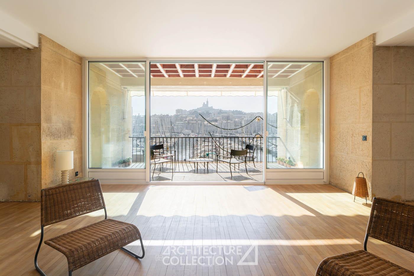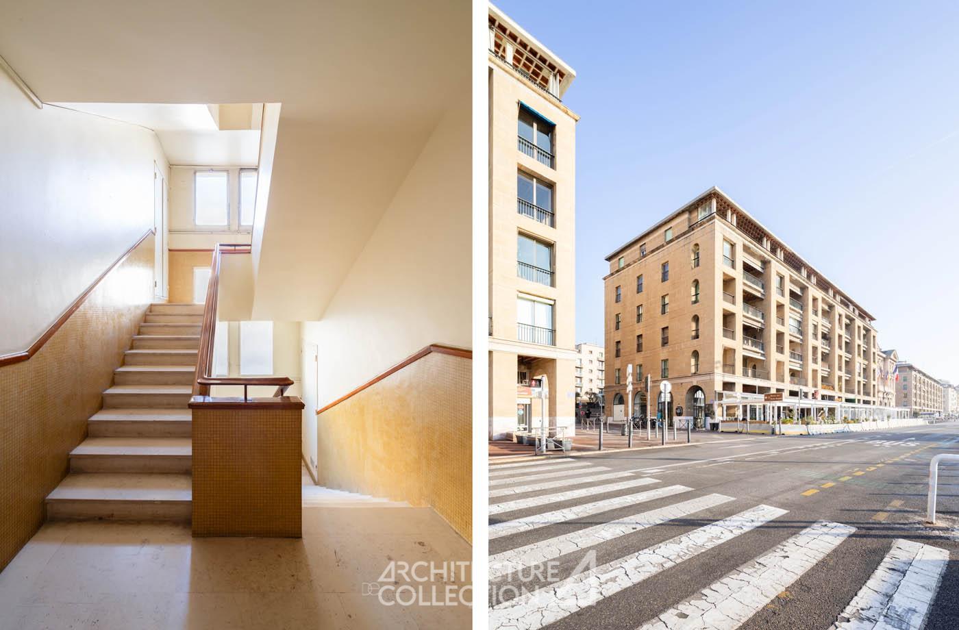 Cet appartement situé sur le Vieux-Port, en première ligne d’un des mythiques immeubles réalisés par l’architecte Fernand Pouillon entre 1947 et 1955, allie vue panoramique, modernité méditerranéenne et confort contemporain.