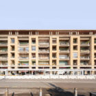 L’architecture présente des formes épurées toutes en longueur, dynamisées par des terrasses en retrait, donnant l’illusion de bow-windows. Supportée par des arcades en rez-de-chaussée, la structure générale s’en trouve allégée, le tout surmonté d’un dernier étage en retrait couronnant l’immeuble.