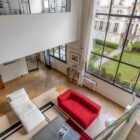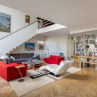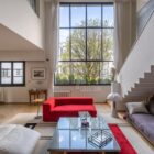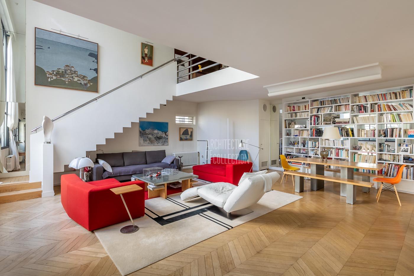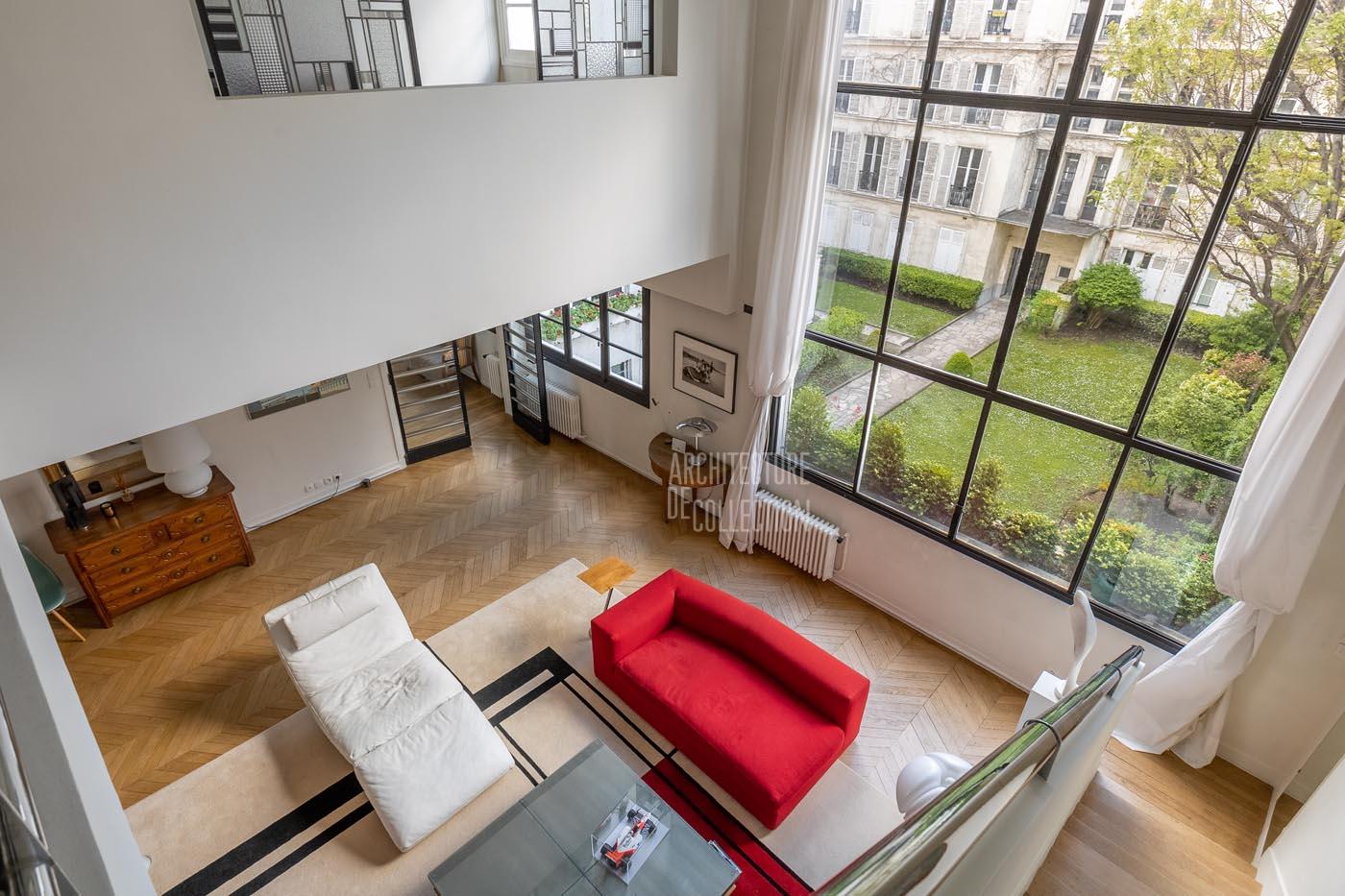 Il accueille une entrée, un magnifique salon de 60 m² avec une hauteur sous plafond de 5,4 mètres et une verrière toute hauteur et une cuisine dînatoire entièrement équipée avec porte de service. Un escalier théâtral mène à l’étage. Celui-ci comprend un salon avec bar d’époque en mezzanine, deux chambres, une salle de bain et une salle d’eau.