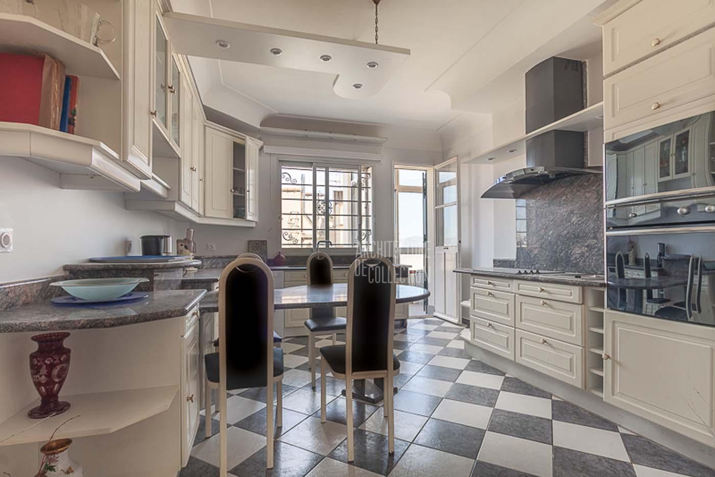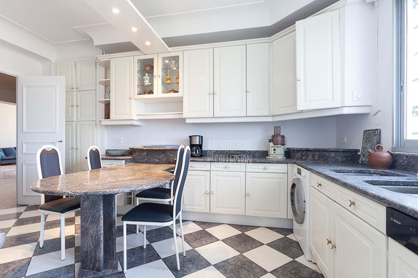 L’espace jour comprend une vaste entrée ouvrant sur un espace intermédiaire avec cheminée, un superbe double séjour de 45 m² avec balcon, une grande cuisine avec terrasse et loggia. L’espace nuit accueille deux très grandes chambres avec chacune un balcon, une salle de bain avec douche et baignoire d’origine et des toilettes indépendantes. Une cave complète l’ensemble.
