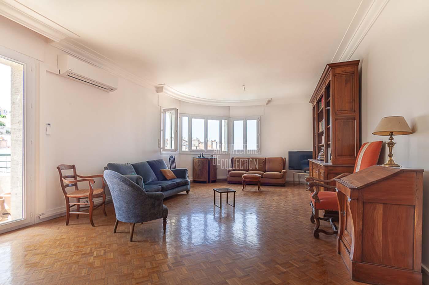 L’appartement présente des volumes généreux et une belle hauteur sous plafond. Toutes les pièces profitent d’une généreuse lumière naturelle tout au long de la journée et de vues dégagées sur toute la ville de Marseille jusqu’au Vieux-Port. L’ensemble peut faire l’objet d’un réaménagement aisé pour créer jusqu’à quatre chambres et une deuxième salle de bain.