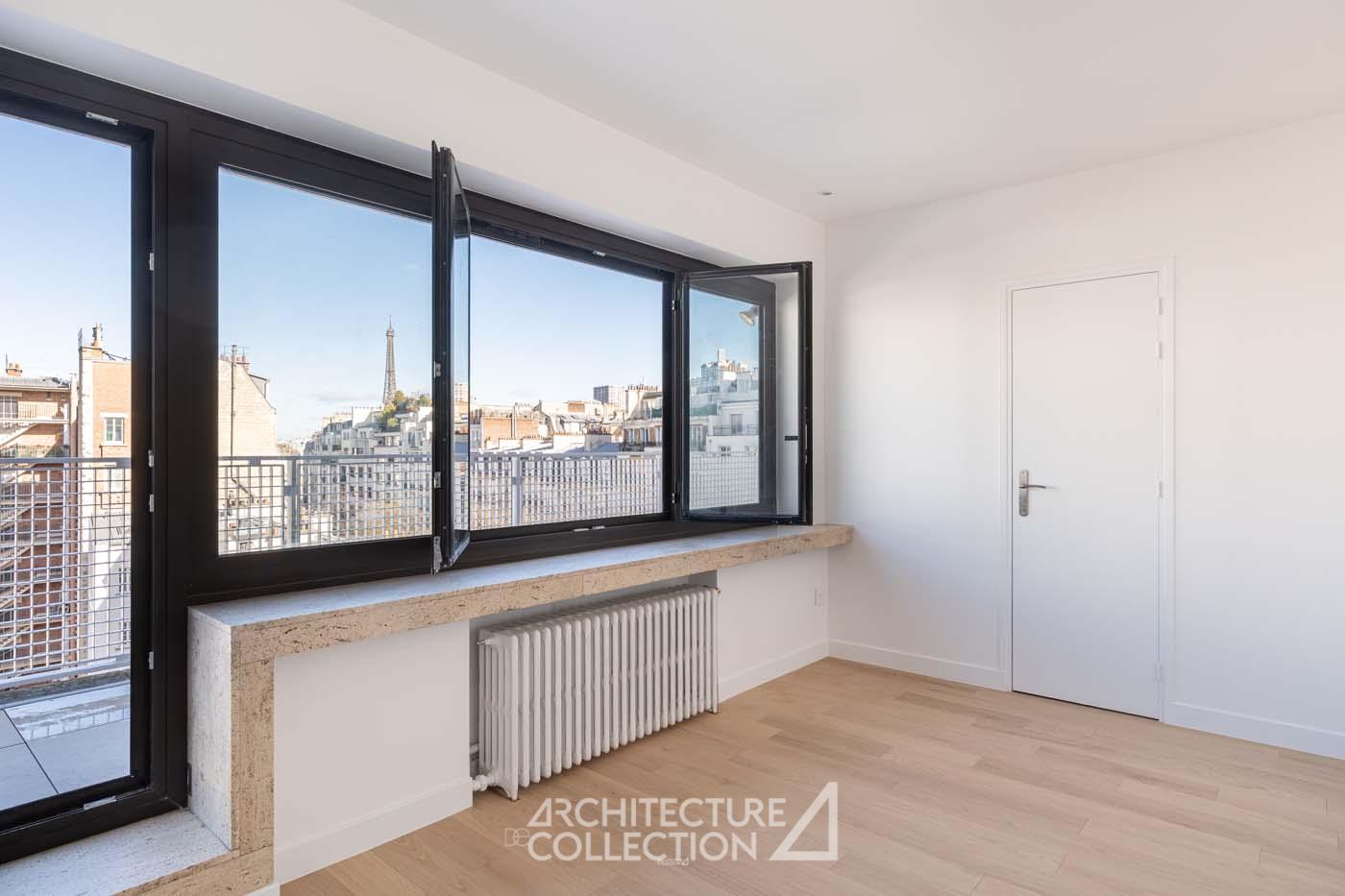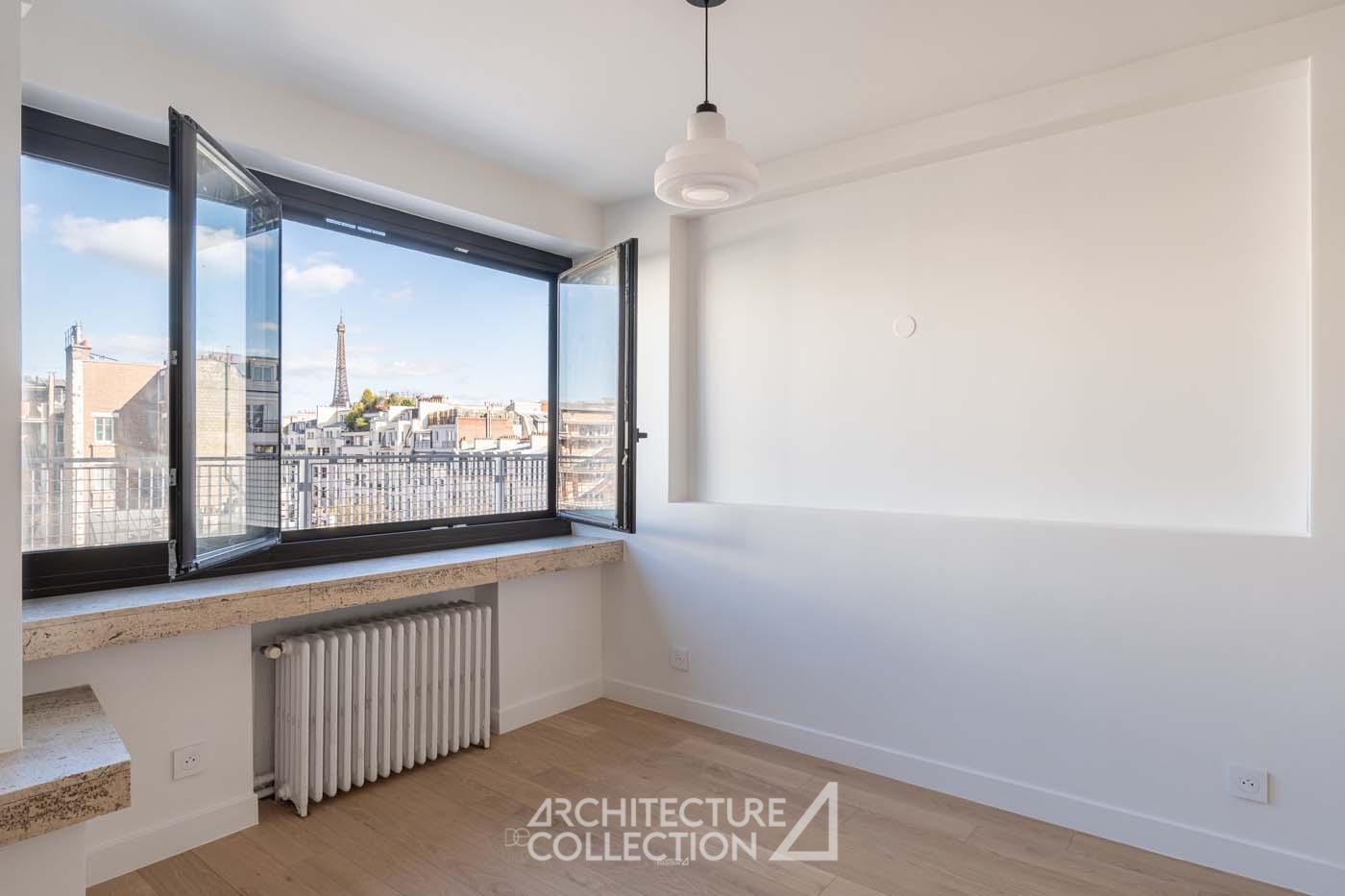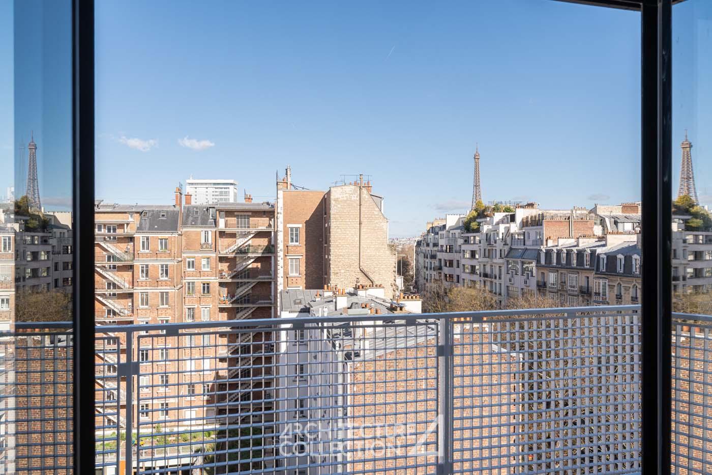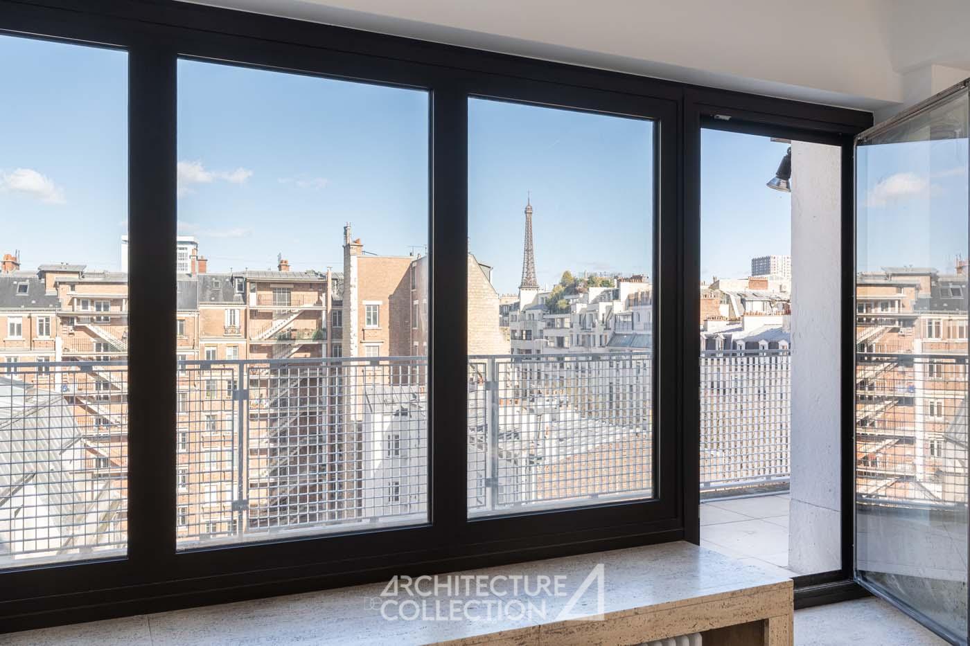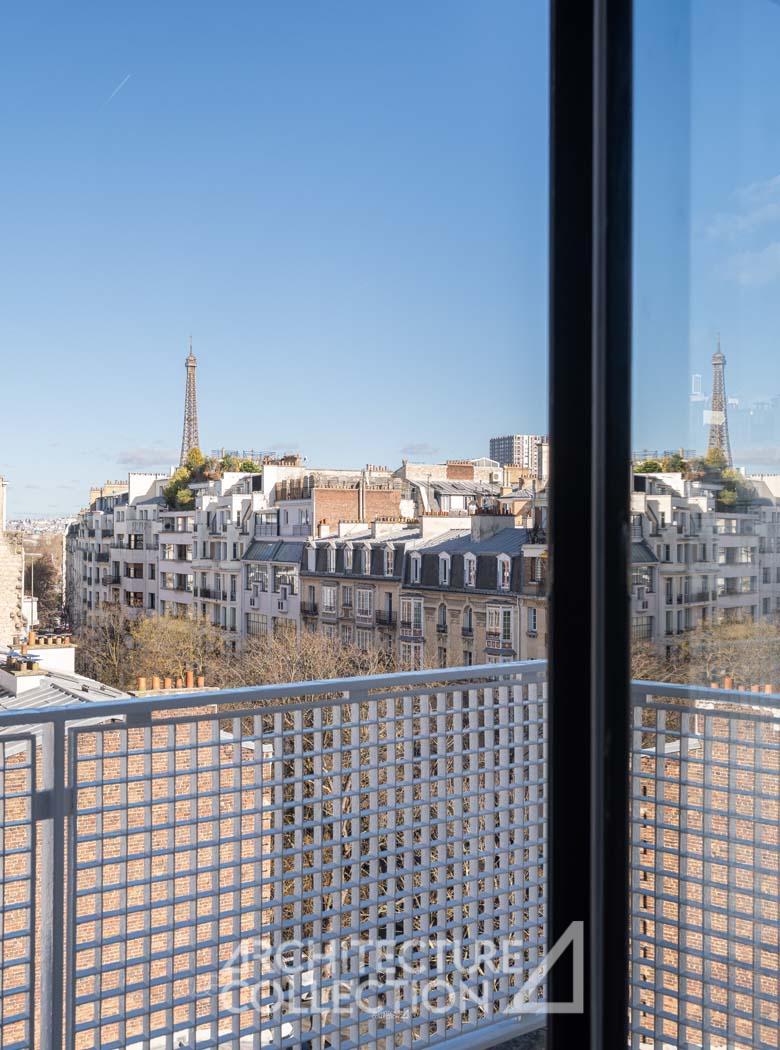 Un appartement avec vue Tour Eiffel dans un immeuble moderne signé Jean Ginsberg et François Heep