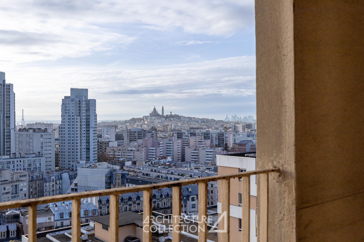 Il offre un espace de vie traversant de plus de 70 m², baigné de lumière et ouvert sur la vue et le ciel grâce à une enfilade de baies vitrées, composé d’un double salon, d’un espace bureau et d’une cuisine américaine, trois chambres, une salle de bain et une salle d’eau.