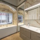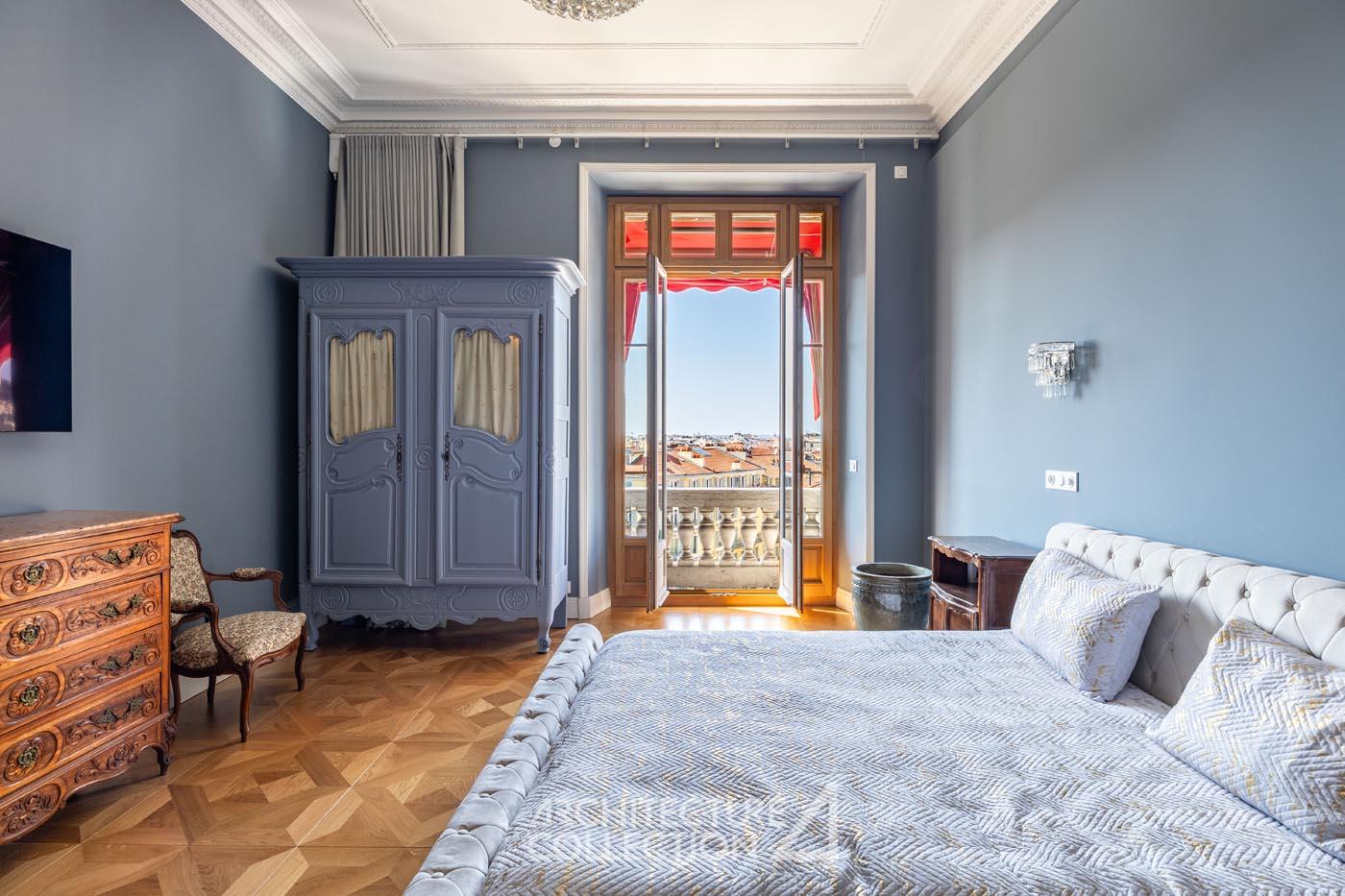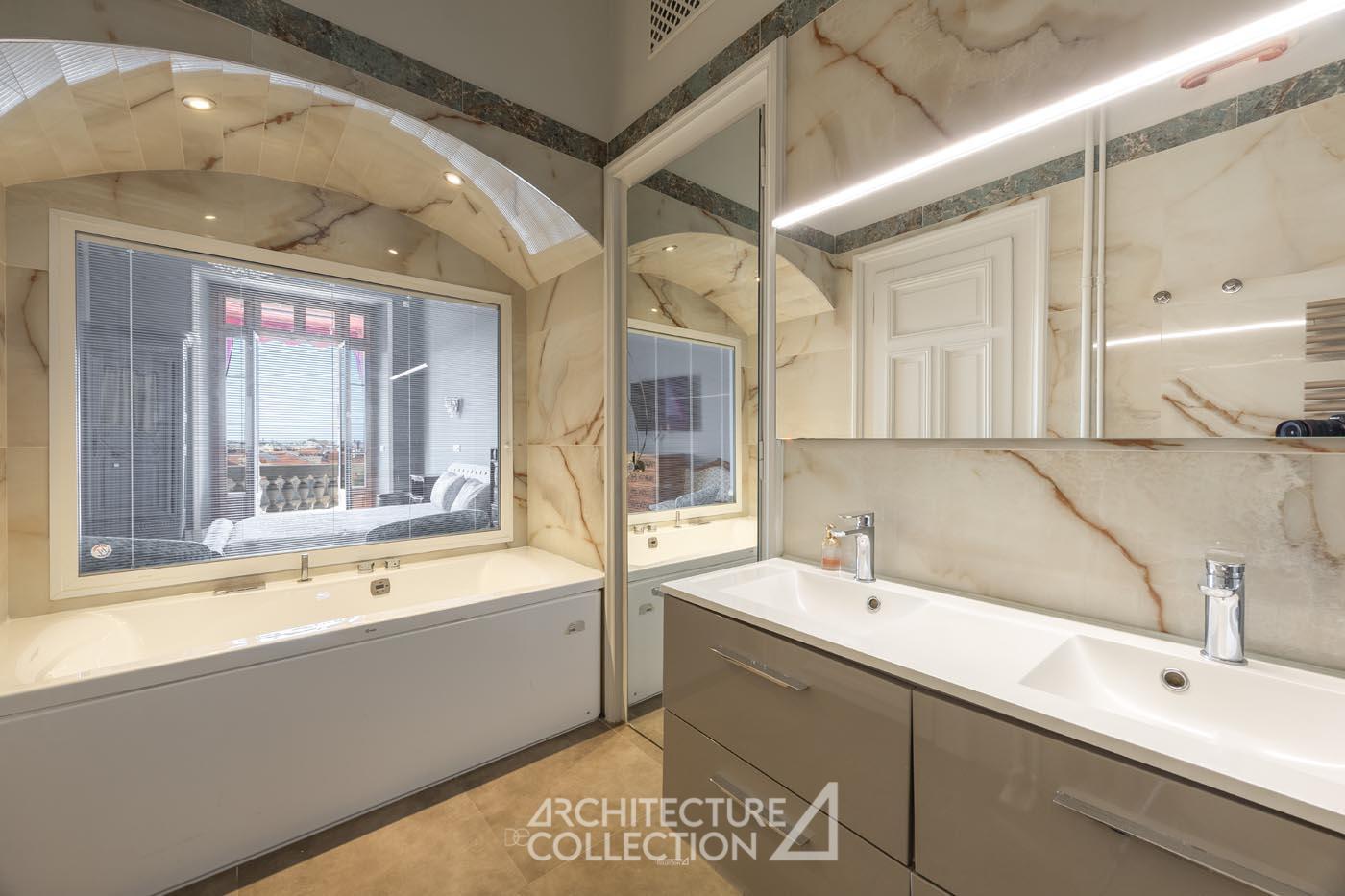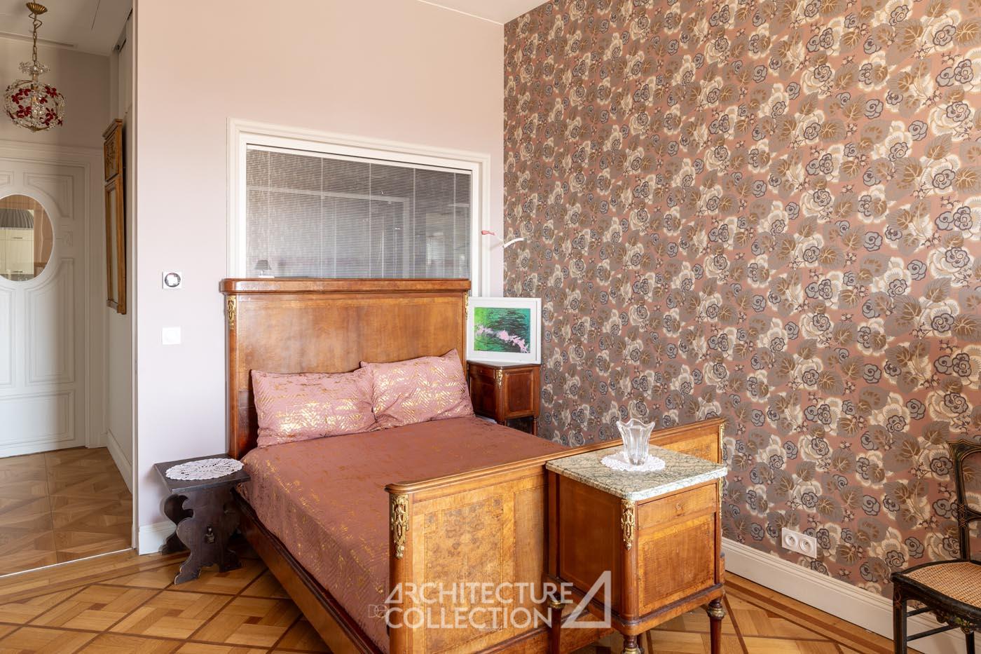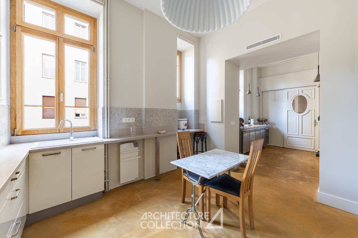 Les éléments d’origine tels que les arches, les moulures et les boiseries ont été conservés, sublimant le caractère bourgeois de cet appartement. Les grandes ouvertures, balcons, et bow-window inondent les espaces de lumière et sont animés par les vues sur le paysage ; tandis que la circulation traversante et la belle hauteur sous plafond garantit une ventilation naturelle.