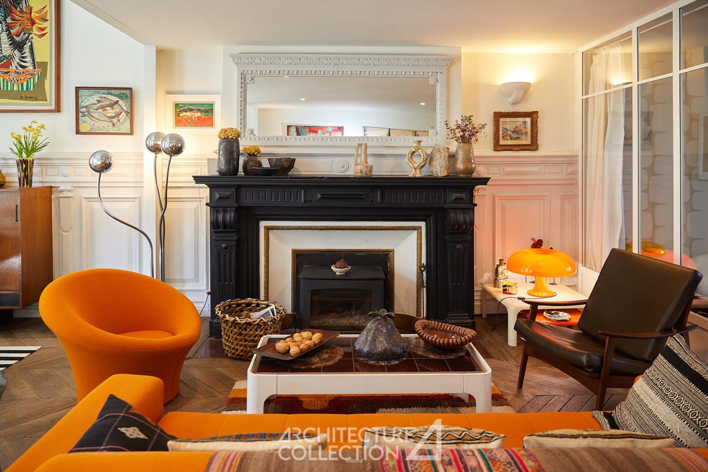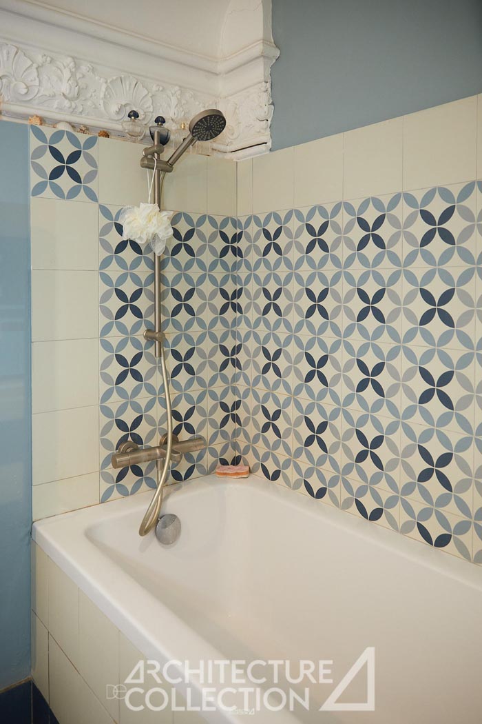 L’intervention a su préserver les caractéristiques emblématiques de l’architecture haussmannienne telles que le parquet en bois massif, les moulures couronnant le plafond de l’appartement et les cheminées, tout en les inscrivant dans une lecture contemporaine.