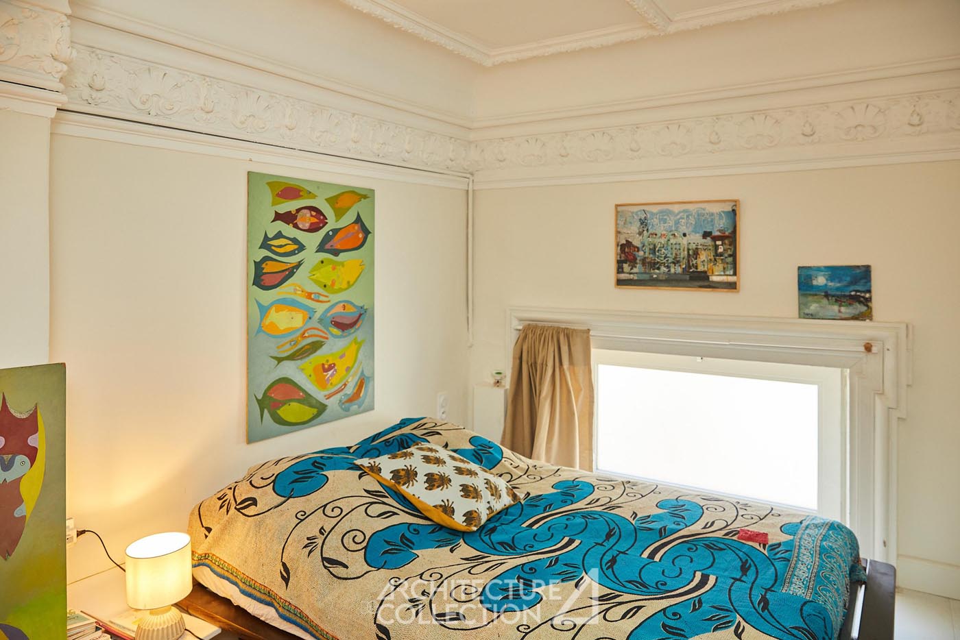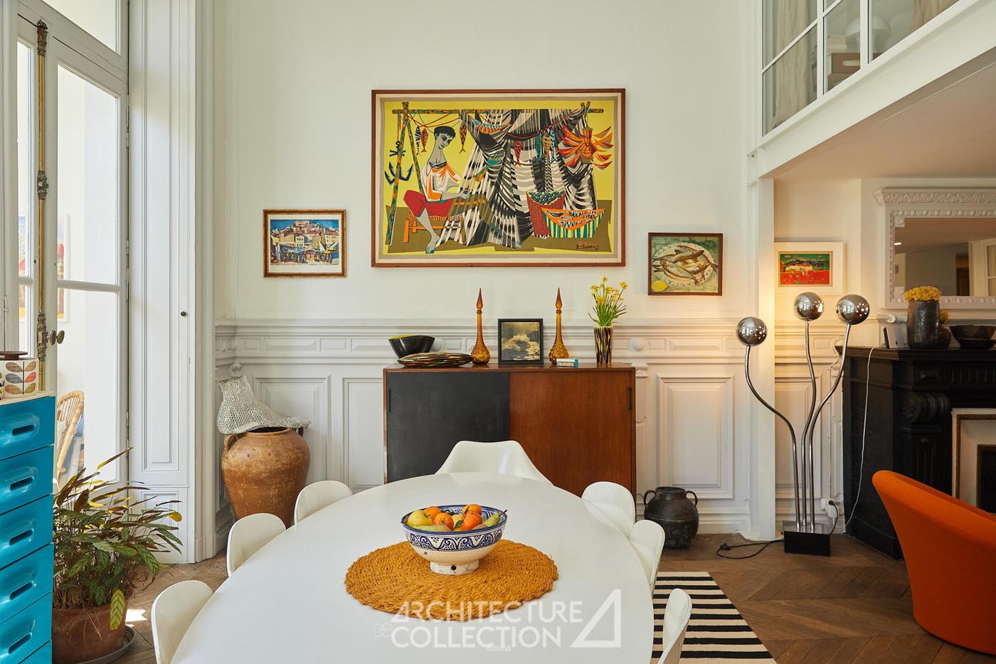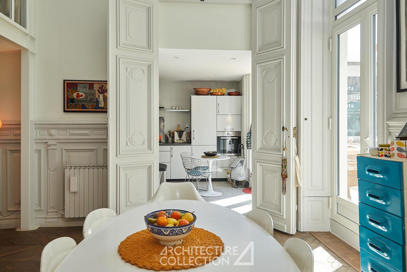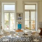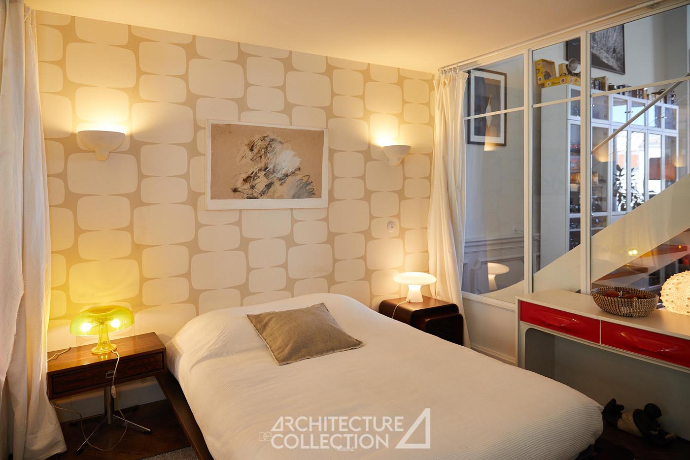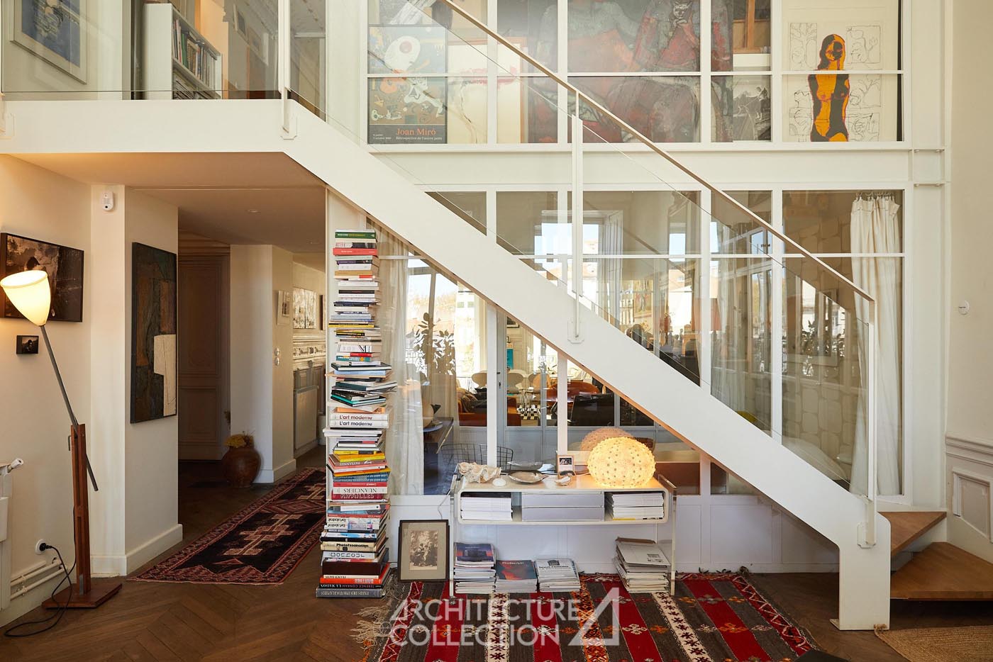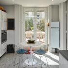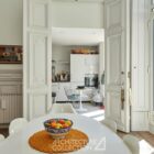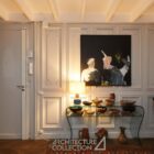 Les volumes généreux, la grande luminosité et la belle hauteur sous plafond définissent les espaces de réception. Au centre du projet, une verrière prolonge cette sensation d’ouverture et structure l’appartement autour d’un noyau en verre et métal réalisé par un ferronnier local. Cet aménagement introduit de nouveaux usages, avec la création d’un espace modulable pouvant accueillir une chambre ou un bureau, sans altérer l’équilibre des volumes d’origine.