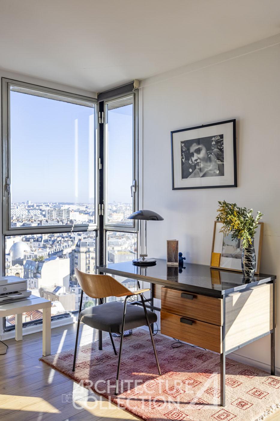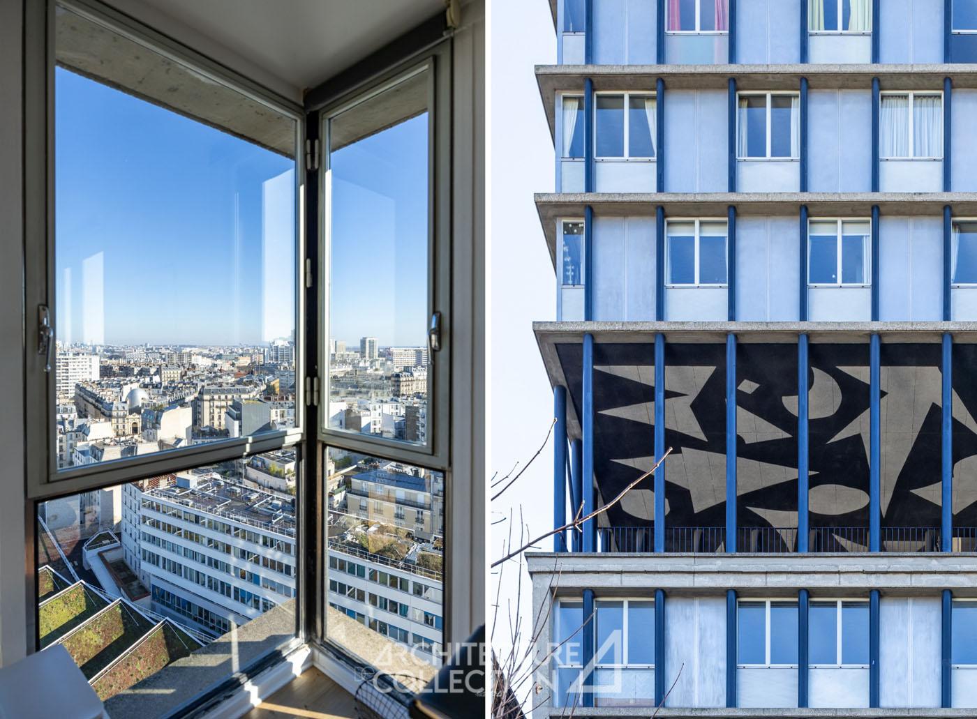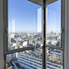 Tout en transparence, les espaces de vie sont immergés dans le ciel grâce à leurs nombreuses fenêtres toute hauteur. Ils offrent des vues panoramiques exceptionnelles sur vue imprenable sur Paris et ses plus beaux monuments (Sacré Coeur, Panthéon…), la place d’Italie et les tours du 13e arrondissement.