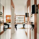 Parmi les matériaux utilisés, le contreplaqué occupe une place centrale, comme dans la plupart des projets de l’architecte. Sa teinte, inspirée des huisseries existantes, structure les volumes et assure une continuité visuelle entre le salon, le couloir et les chambres.