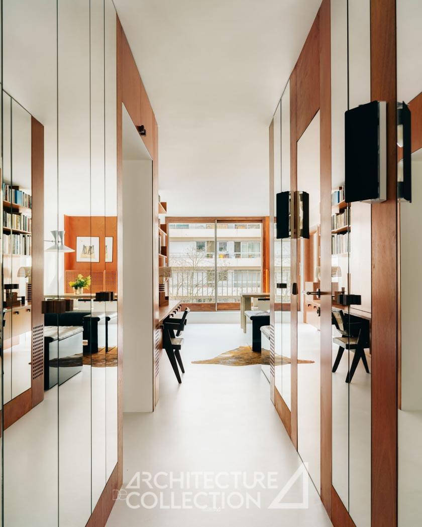 L’appartement bénéficie aussi de nombreux rangements, subtilement intégrés dans différentes pièces de mobilier encastrées.