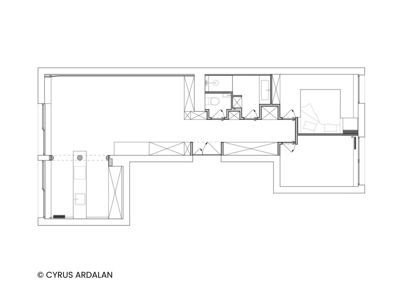 Cet appartement a été pour Cyrus Ardalan un véritable terrain d’expérimentation, un travail minutieux et cohérent sur la matérialité et les usages, pensés pour enrichir l’expérience d’habiter.
