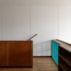 Le niveau supérieur, accueillant une entrée avec rangement, donne accès à la cuisine et à la salle à manger, ouverte sur le séjour au rez-de-chaussée de l’appartement. Le niveau inférieur, traversant, est desservi par un escalier Jean Prouvé.