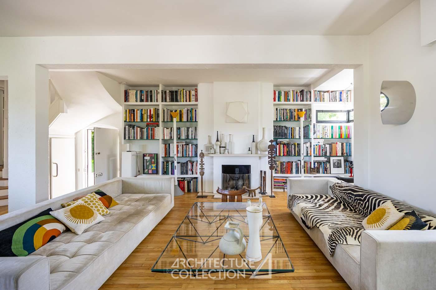 D’une surface de 154 m² (165 m² habitable), il est desservi par une belle entrée principale qui permet d’accéder au niveau haut dédié aux espaces de réception et au niveau inférieur qui accueille la partie nuit et les espaces de services.