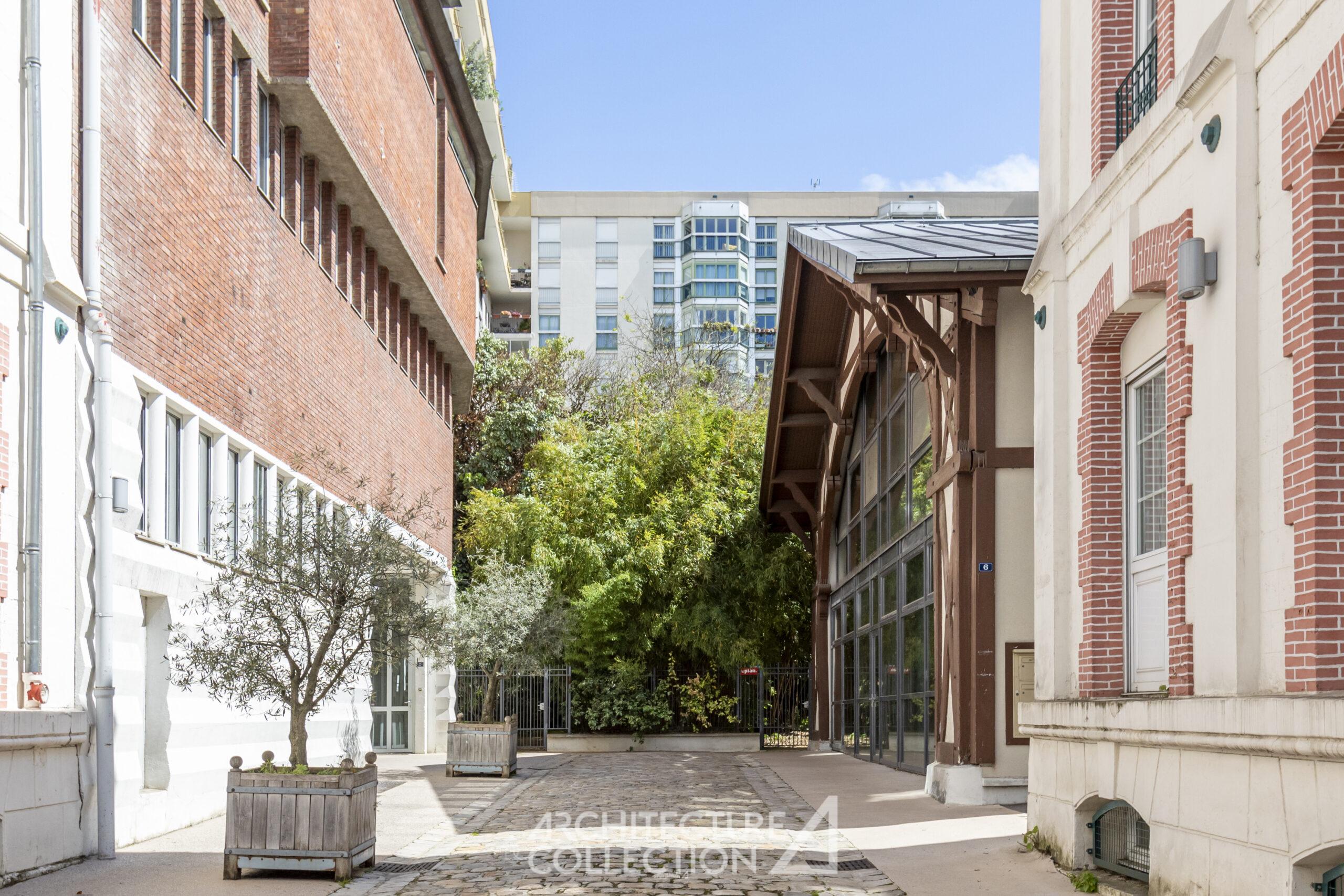 Aux portes de Paris, ce loft à usage mixte est situé au cœur d’un ancien site industriel entièrement réhabilité et reconverti en habitations et ateliers d’artistes en 2001 par l’agence d’architecture XY. Accolé à l’allée principale, au sein d’une cour arborée et sécurisée, il offre une grande liberté d’aménagement.