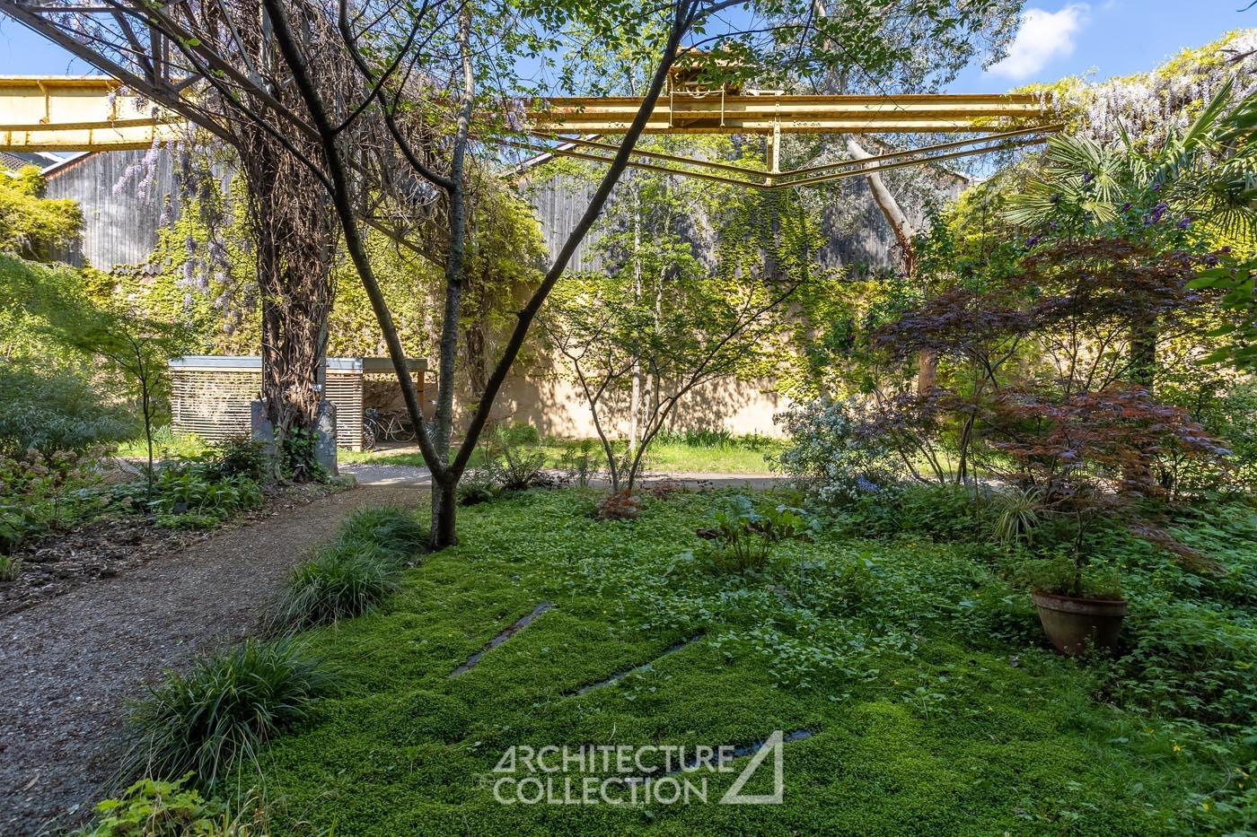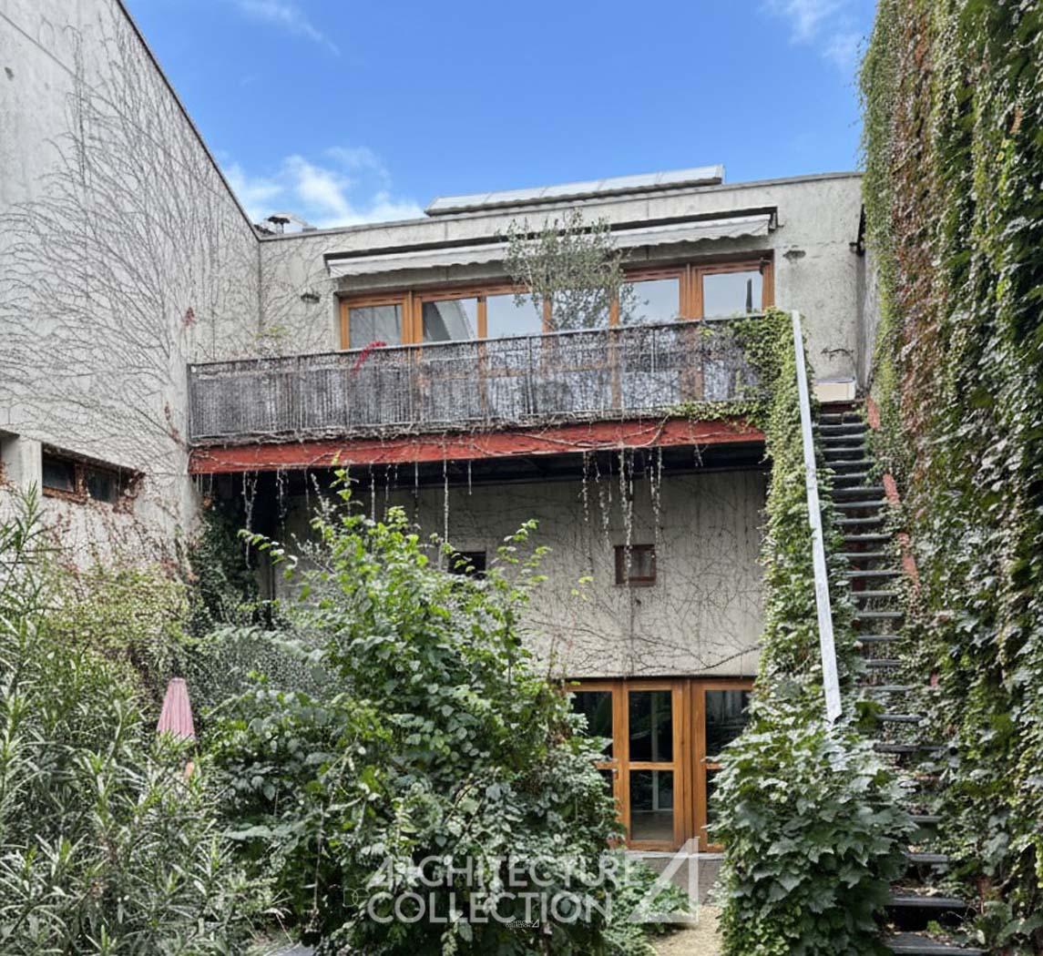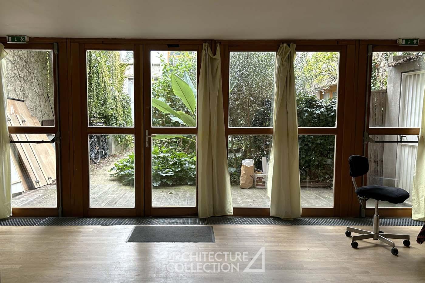 En rez-de-jardin, ce loft, ancien atelier d’accordeurs-facteurs de piano parfaitement isolé acoustiquement, déploie une surface de 130 m² sur 2 niveaux.