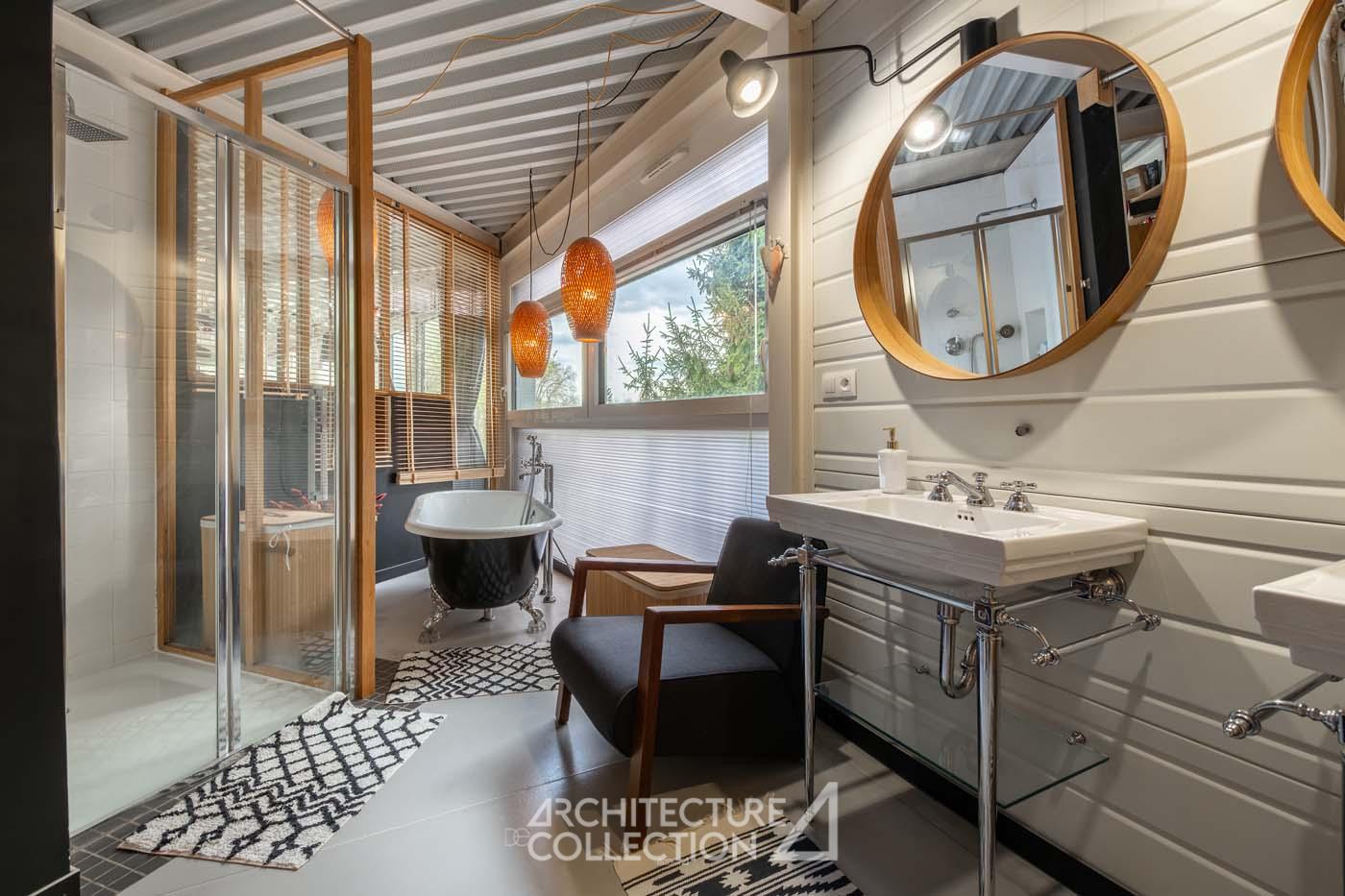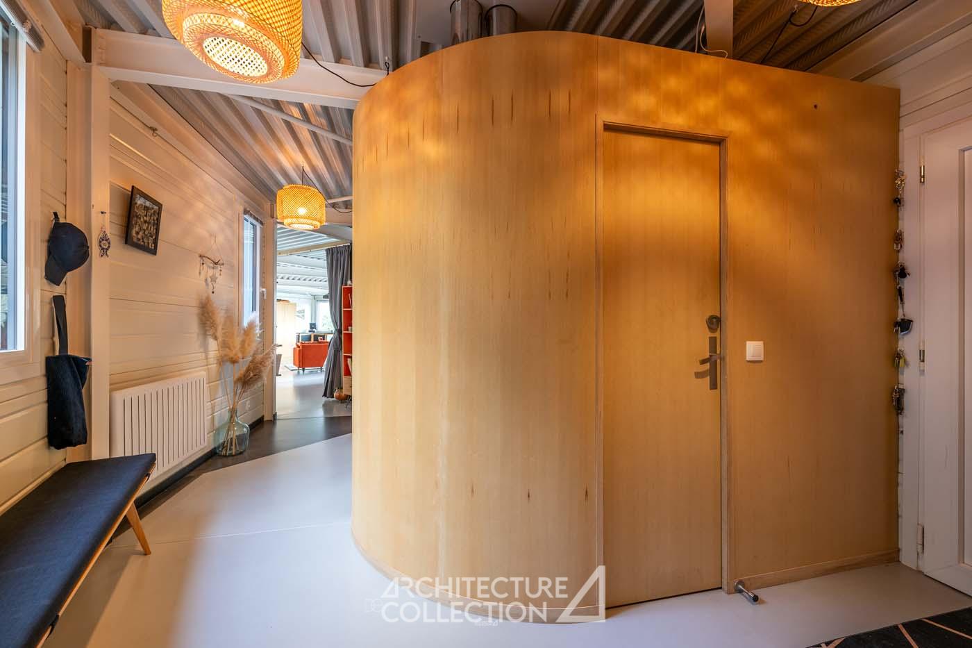 Construite en 2015 par le cabinet Citoula & Raulet architectes CTLЯ, cette réalisation contemporaine reprenant les caractéristiques architecturales du loft offre une vue à 180° sur la Seine.