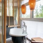 A l’intérieur, le triple vitrage garantit à l’ensemble une isolation thermique et phonique performante, et le double système de chauffage (poêle à bois et convecteurs électriques) allié à une ventilation double flux limite considérablement les déperditions d’énergie tout en garantissant un confort de vie, en été comme en hiver.