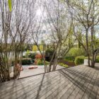 Épousant la pente naturelle du terrain, les extérieurs prennent place de part et d’autre de la maison. Ils se composent, au sud, d’une grande terrasse aménagée en escalier avec ses nombreux arbres et fleurs et au nord, d’un jardin arboré idéal en été.