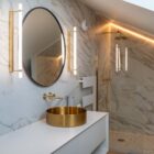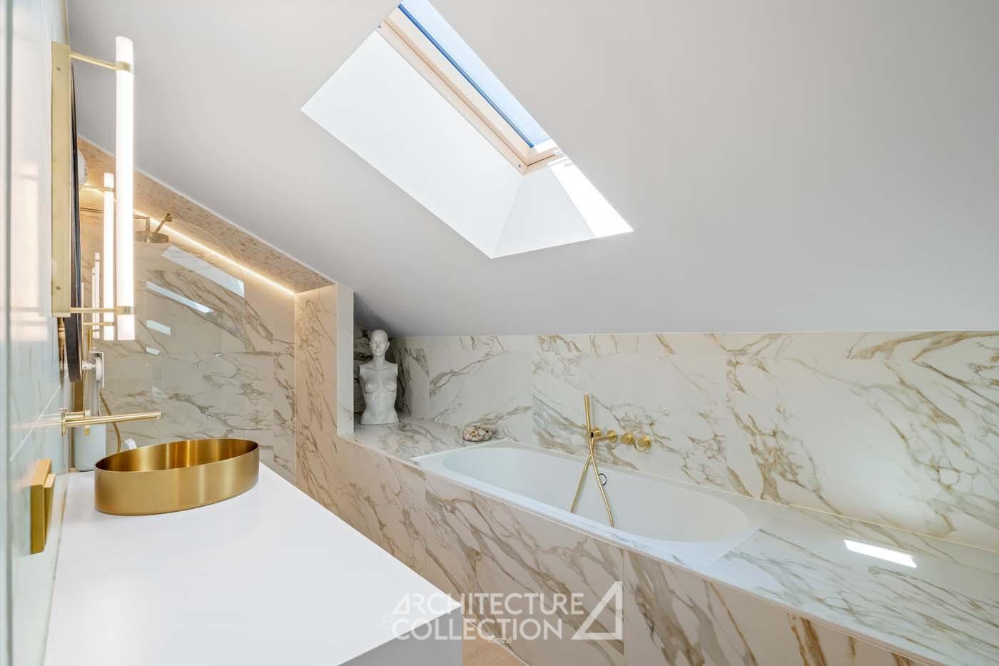 Le 2e niveau abrite une chambre parentale, une salle d’eau avec douche et baignoire, un grand dressing et une mezzanine pouvant faire office d’espace de détente, de salon télé, de salle de jeu ou de chambre supplémentaire.