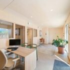 De l’autre côté du bâti, un espace relié au premier étage avec entrée indépendante permet l’exercice d’une profession libérale. Il comprend un open space, un bureau fermé ainsi qu’une kitchenette .