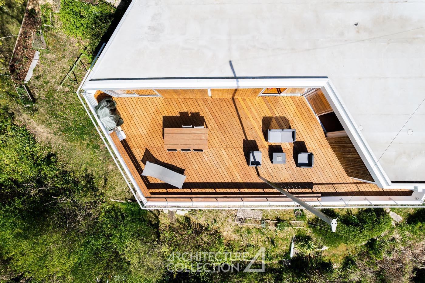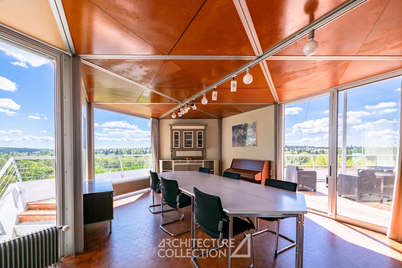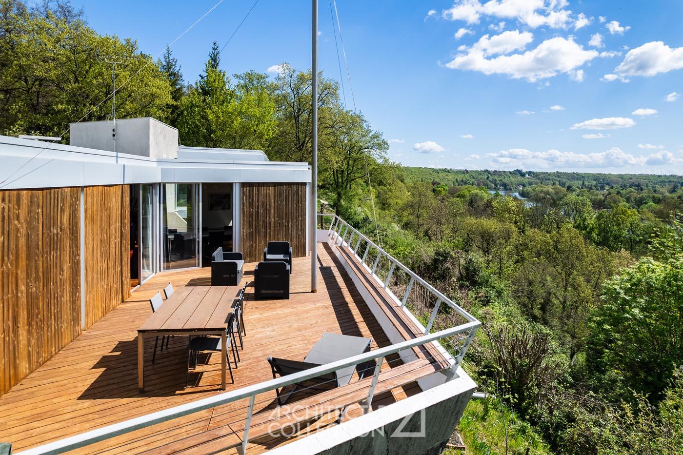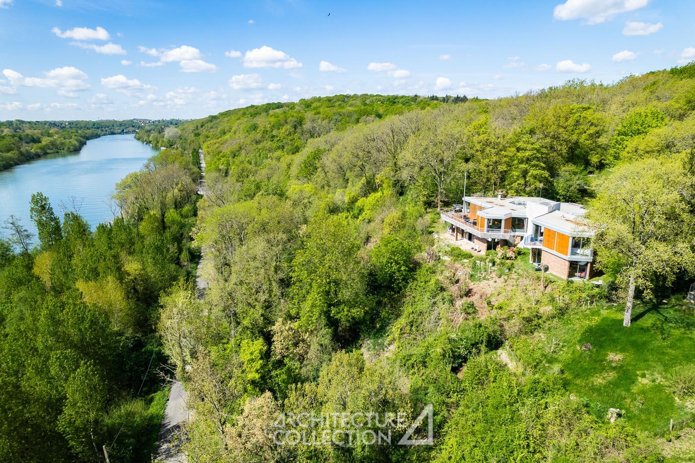 Nichée sur les coteaux de Seine, au cœur d’un site naturel, la maison profite d’un environnement d’exception.
