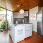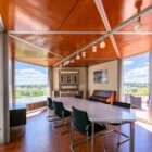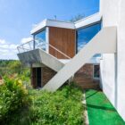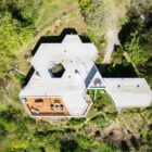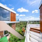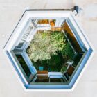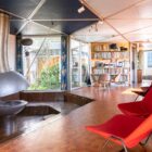 L’étage accueille également une cuisine ouverte, trois chambres, une salle d’eau et une salle de bain organisées autour d’un patio. Les deux demi-niveaux haut et bas, pensés comme des logements indépendants, disposent chacun d’un salon, d’une chambre, d’une cuisine et d’une salle de bain.