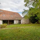 Extension de la grange existante, l’architecture de la maison se caractérise par sa simplicité, l’élégance de son dessin et l’ingéniosité de son programme. Sa large toiture surdimensionnée et protectrice, couverte de tuiles identiques à celles des bâtiments environnants, prolonge celle de la grange à laquelle elle s’adosse et s’intègre parfaitement à son environnement rural tout en offrant un grand confort de vie. Les larges ouvertures aux huisseries de bois et le dialogue entre matériaux traditionnels et techniques créent une œuvre intemporelle, qui évoque à la fois les réalisations du Régionalisme critique et certaines créations de la scène architecturale contemporaine, à la mise en œuvre minimaliste.