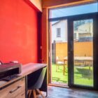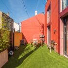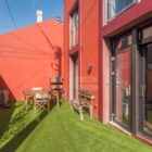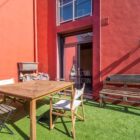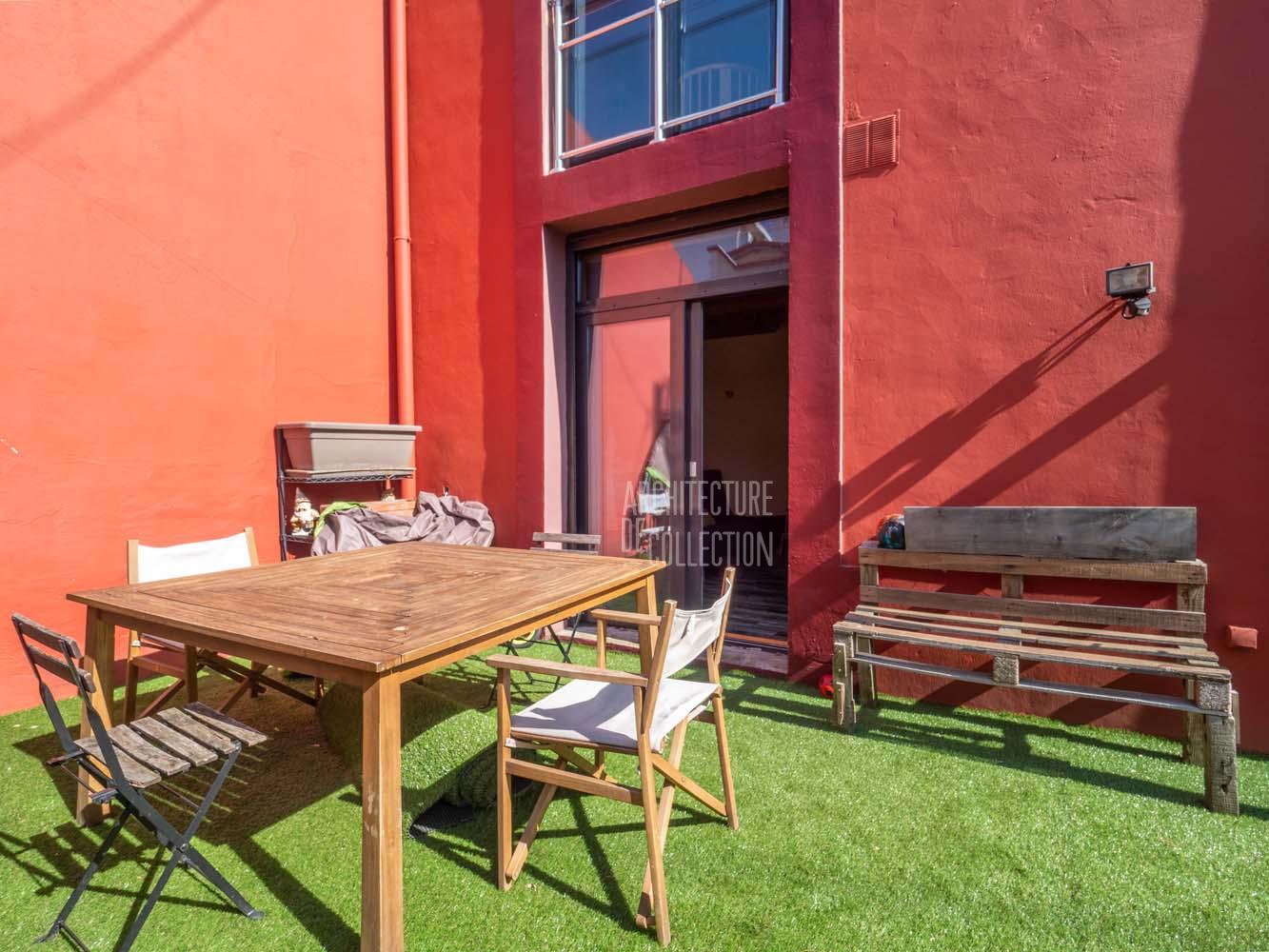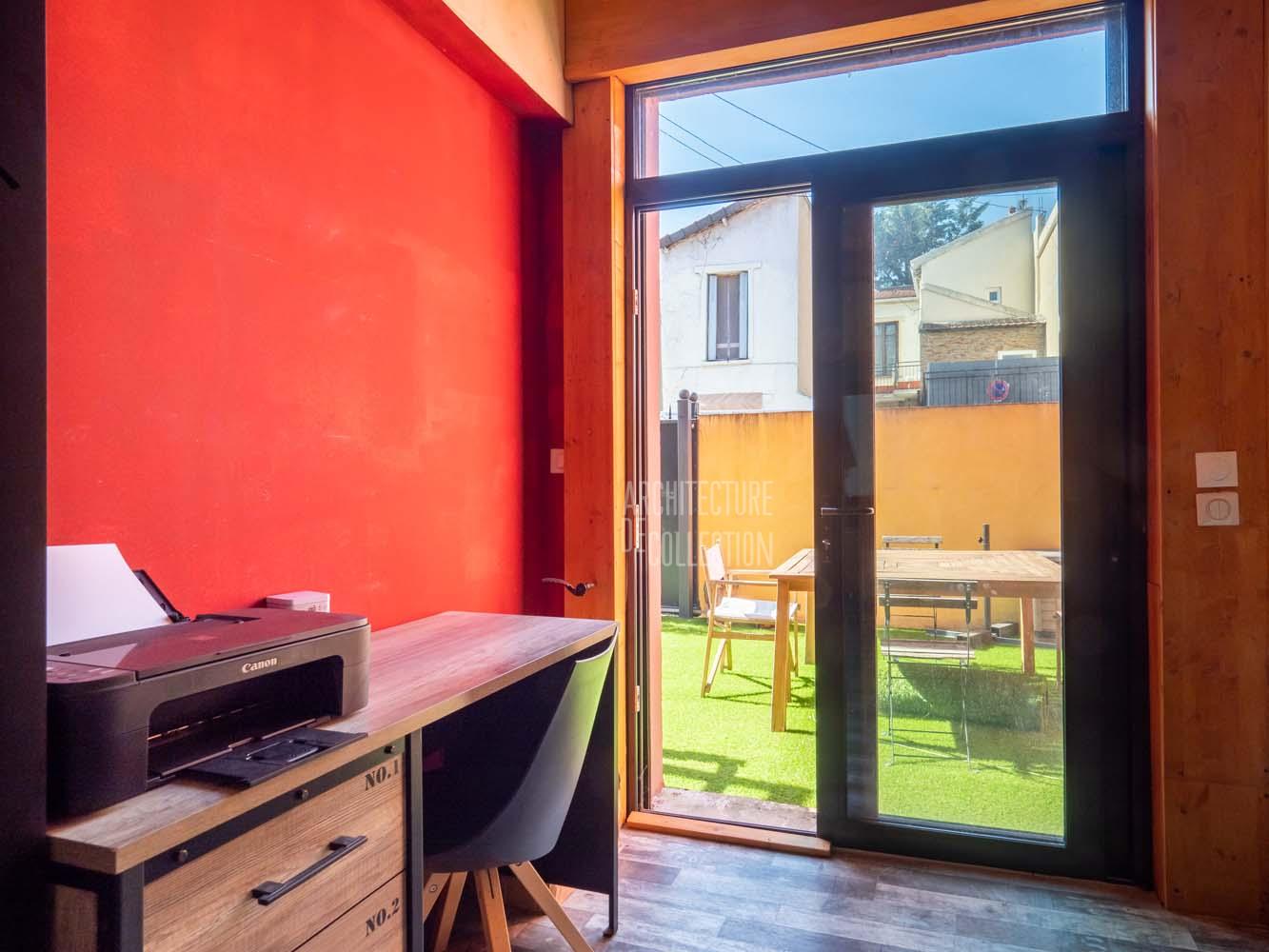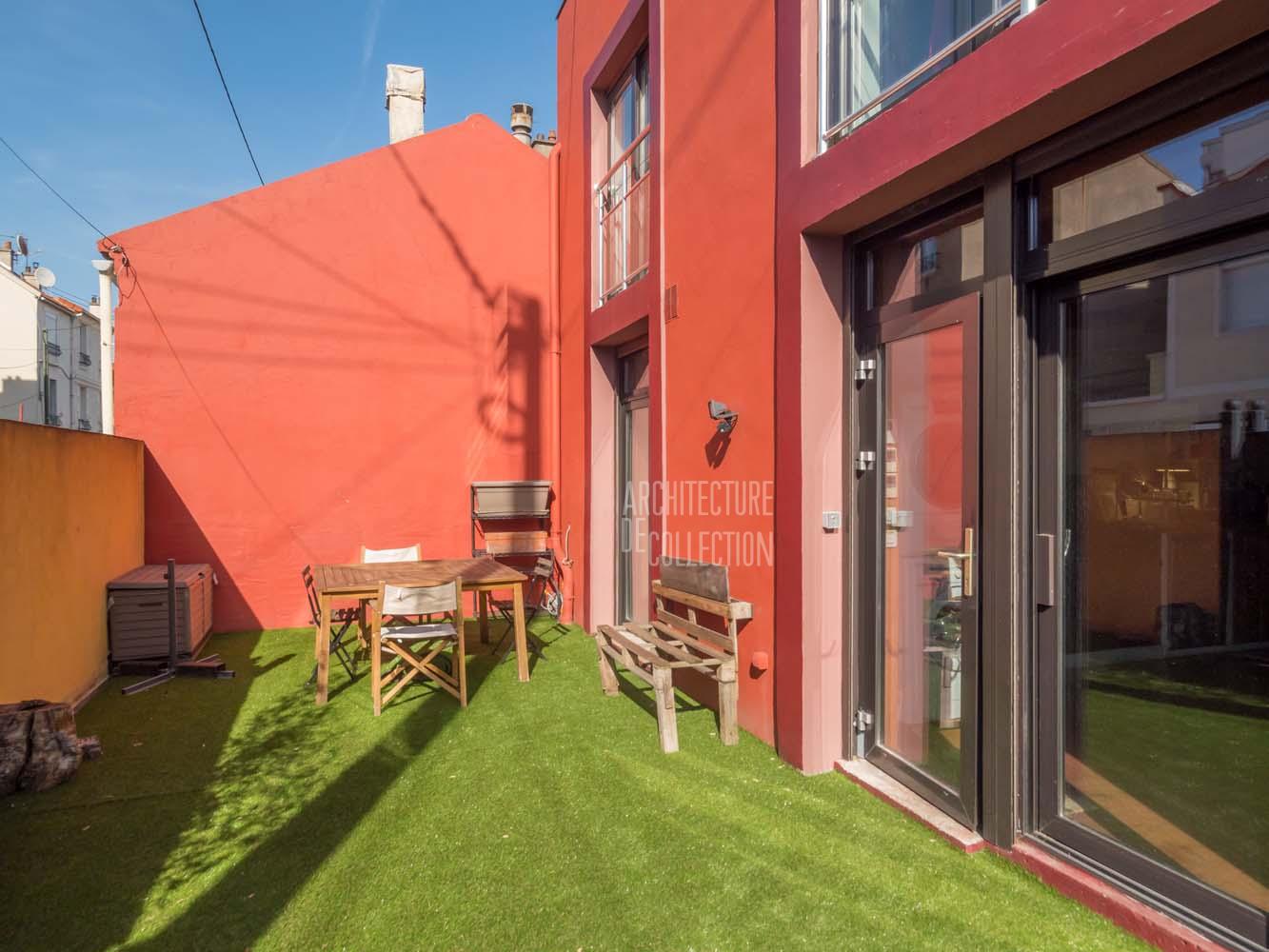 L’ensemble offre le charme d’une maison indépendante, mêlant esthétique industrielle, avec sa structure apparente, et exotisme, avec sa façade de couleurs rouge vif et son mur d’enceinte jaune.