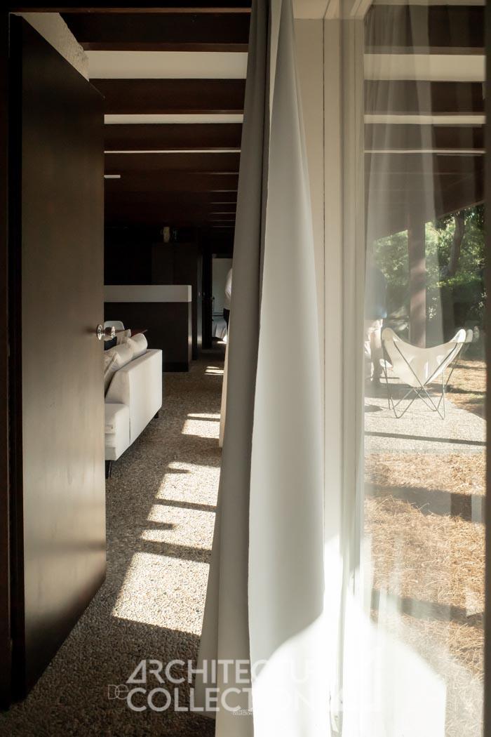 Par son approche mesurée, Louis Gombeaud intègre son architecture dans le paysage avec justesse. La construction a été pensée dans le respect de la pinède, privilégiant la lumière et les éléments naturels.