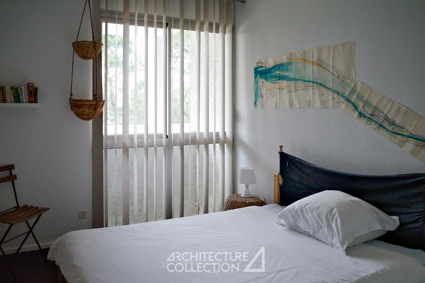 L’esprit des années 1970 y est encore lisible, dans la justesse des proportions, dans la fluidité des circulations et dans cette manière subtile de capter la lumière à toute heure du jour. Les grandes baies vitrées, les murs blancs, et l’architecture minimaliste laissent le paysage faire le spectacle.