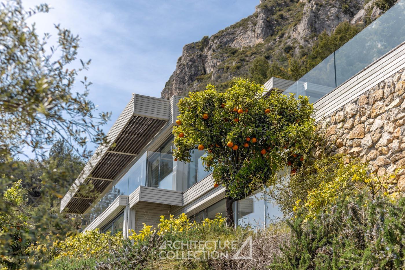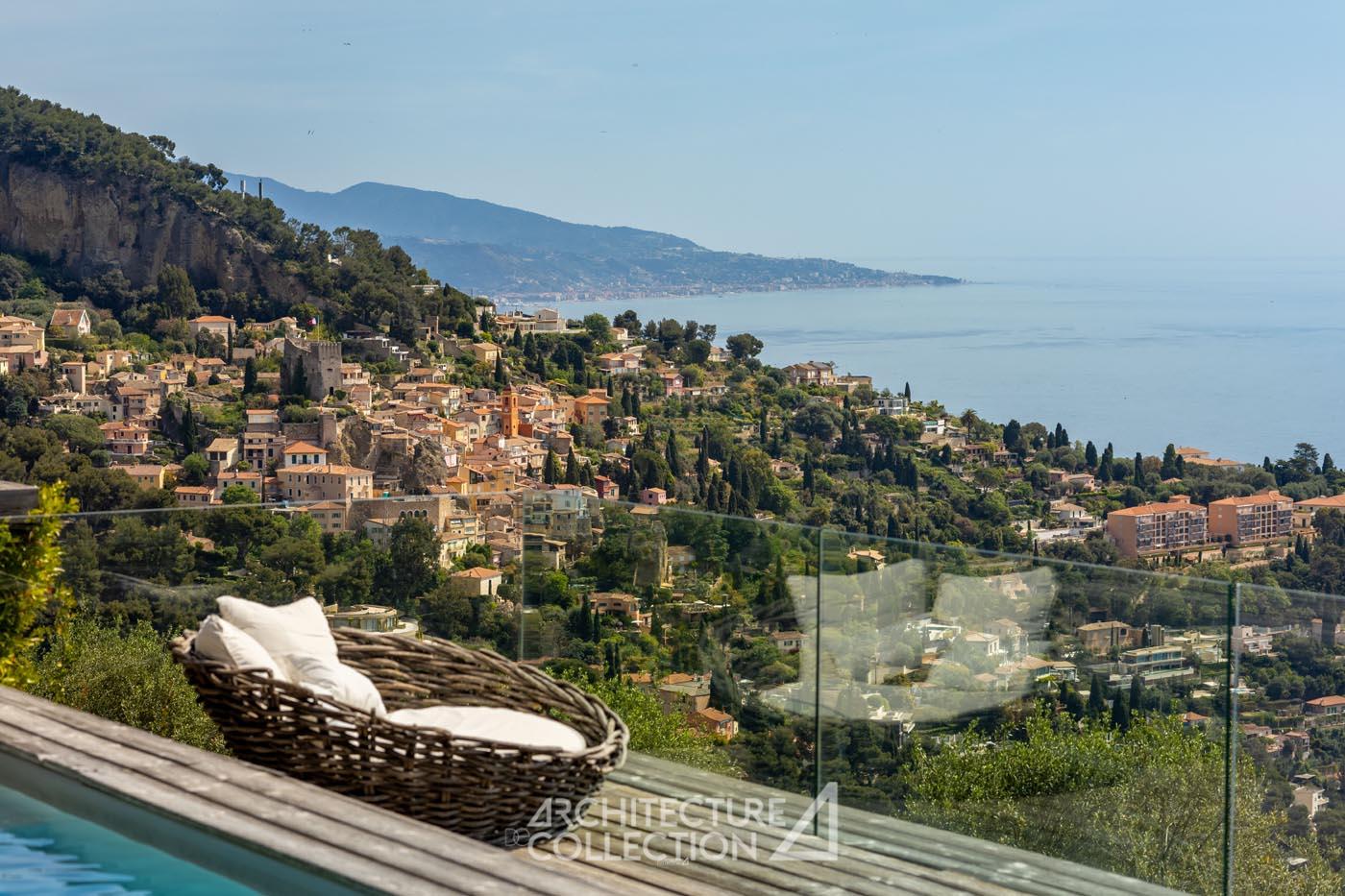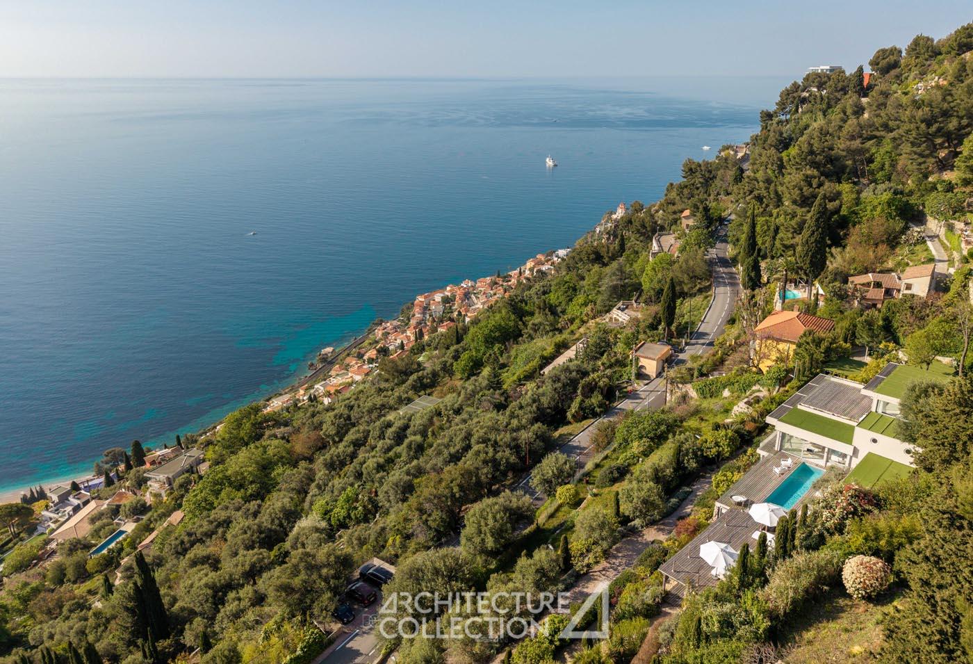 Connue pour avoir été le lieu de résidence de l’architecte Le Corbusier, Roquebrune-Cap-Martin fait dialoguer l’architecture médiévale du vieux village avec les fleurons de l’architecture Belle époque, moderne et contemporaine.Visibles depuis la maison, la villa E-1027, d’Eileen Gray, architecte et designer, le Cabanon de Le Corbusier et ses unités de camping, côtoient le Maybourne Riviera d’André Minangoy, rénové par Jean-Michel Wilmotte, le Parc Massolin de Georges Candilis, collaborateur de Le Corbusier ainsi qu’un projet paysagé de l’architecte Marc Barani.