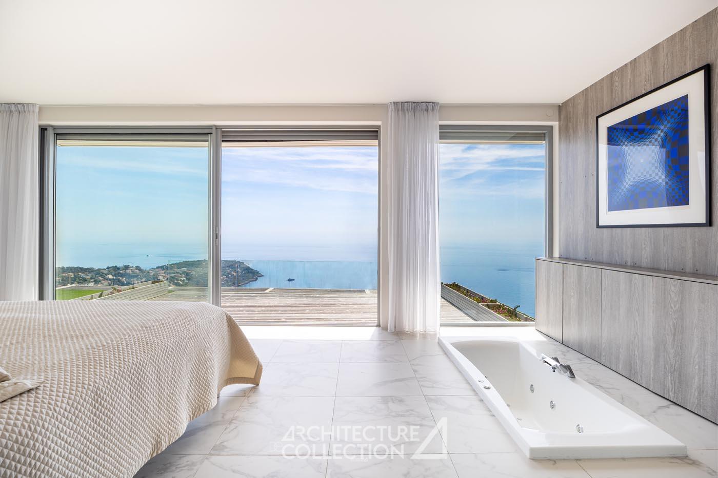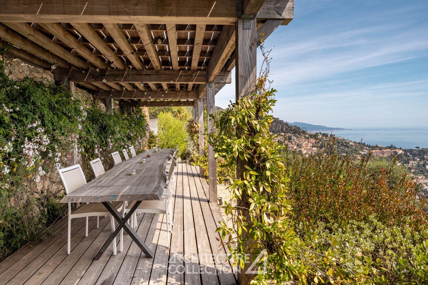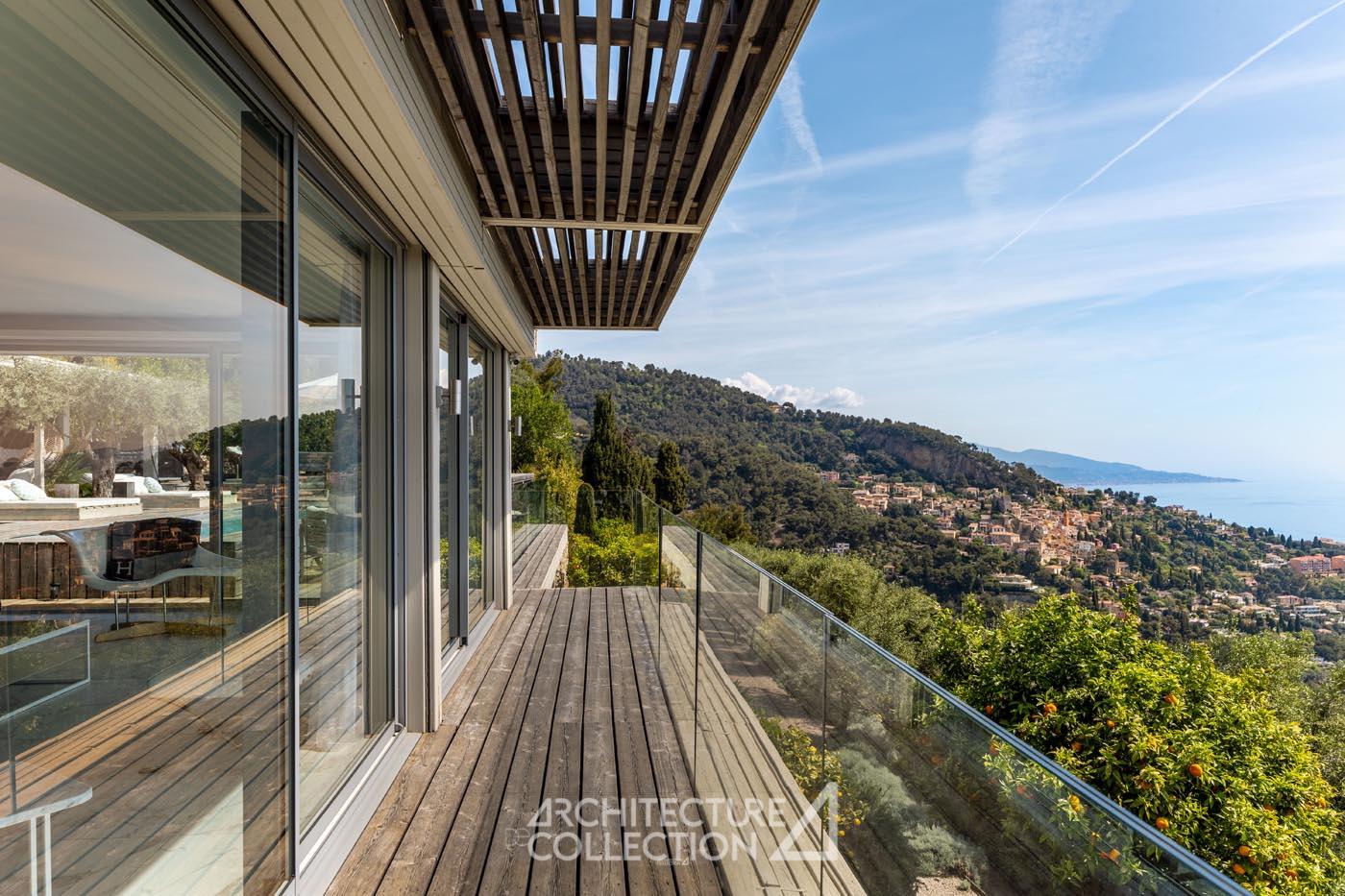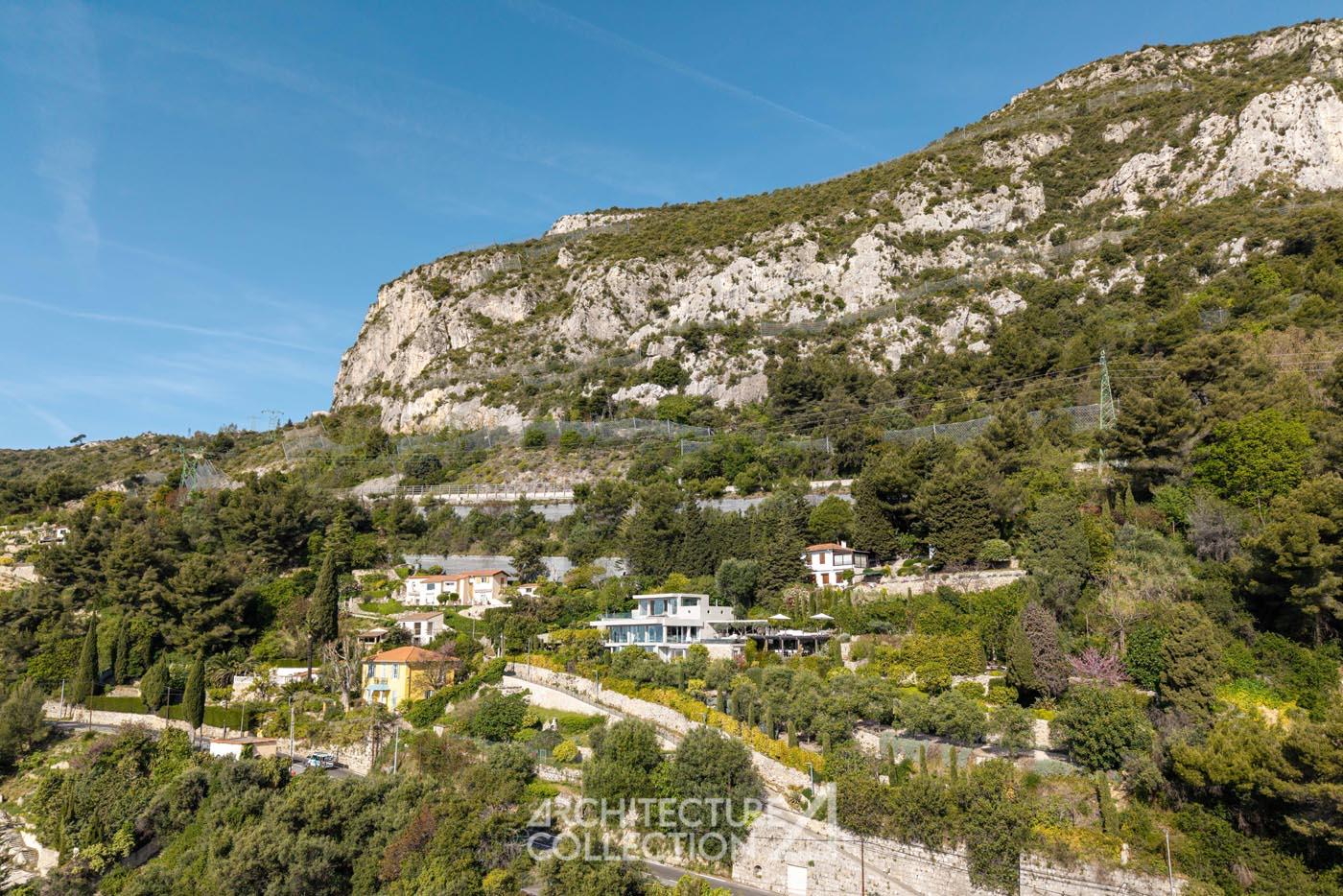 Connue pour avoir été le lieu de résidence de l’architecte Le Corbusier, Roquebrune-Cap-Martin fait dialoguer l’architecture médiévale du vieux village avec les fleurons de l’architecture Belle époque, moderne et contemporaine.Visibles depuis la maison, la villa E-1027, d’Eileen Gray, architecte et designer, le Cabanon de Le Corbusier et ses unités de camping, côtoient le Maybourne Riviera d’André Minangoy, rénové par Jean-Michel Wilmotte, le Parc Massolin de Georges Candilis, collaborateur de Le Corbusier ainsi qu’un projet paysagé de l’architecte Marc Barani.