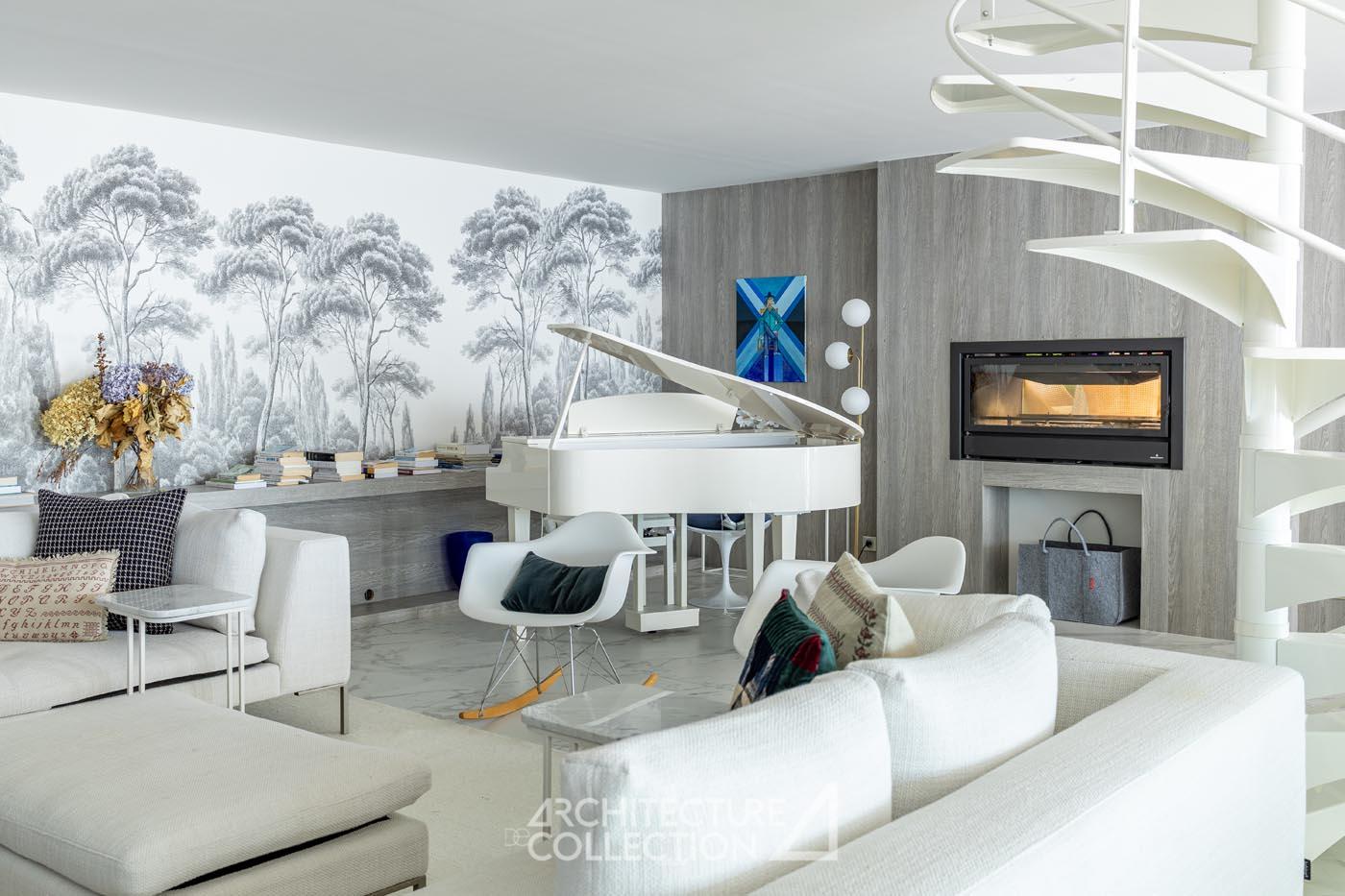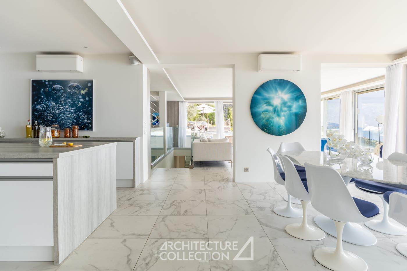 Ces pièces de vie bénéficient de vues panoramiques et ouvrent sur les espaces extérieurs.